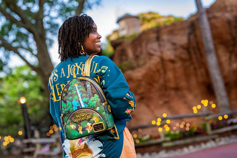 - You can store all your new goodies in a Tiana’s Bayou Adventure Loungefly Mini Backpack featuring Princess Tiana, Naveen, Mama Odie and Louis.