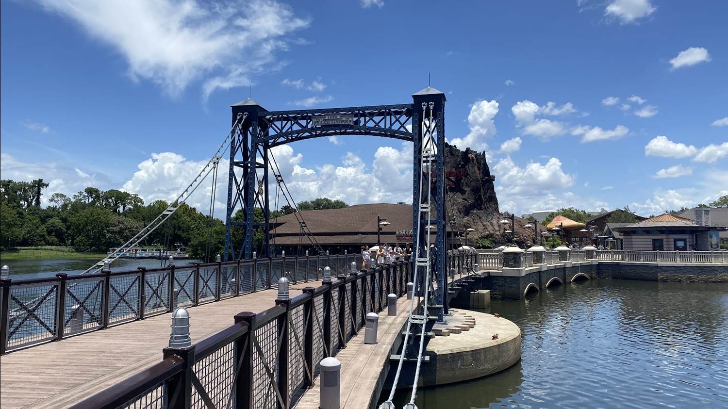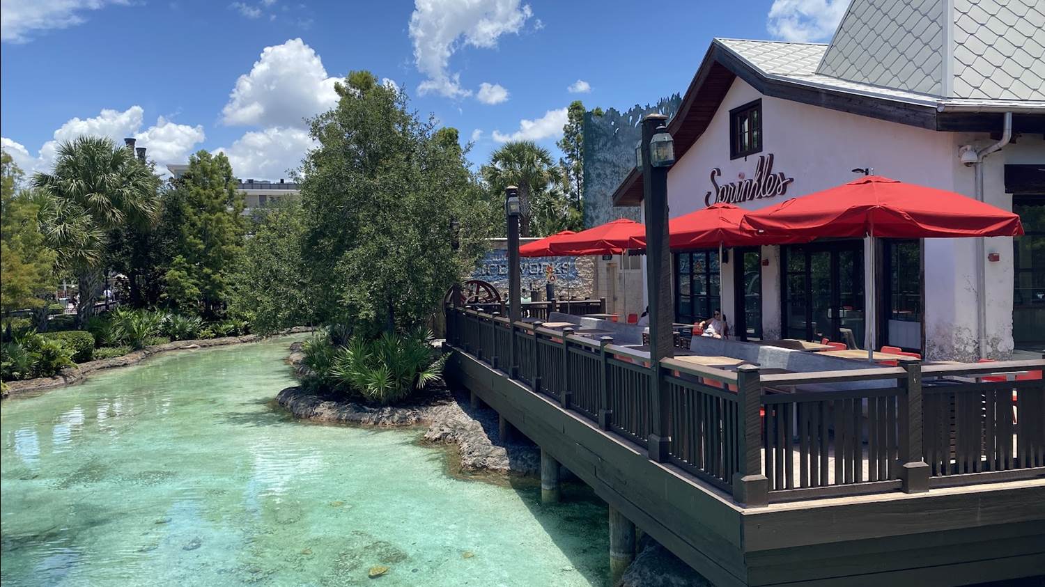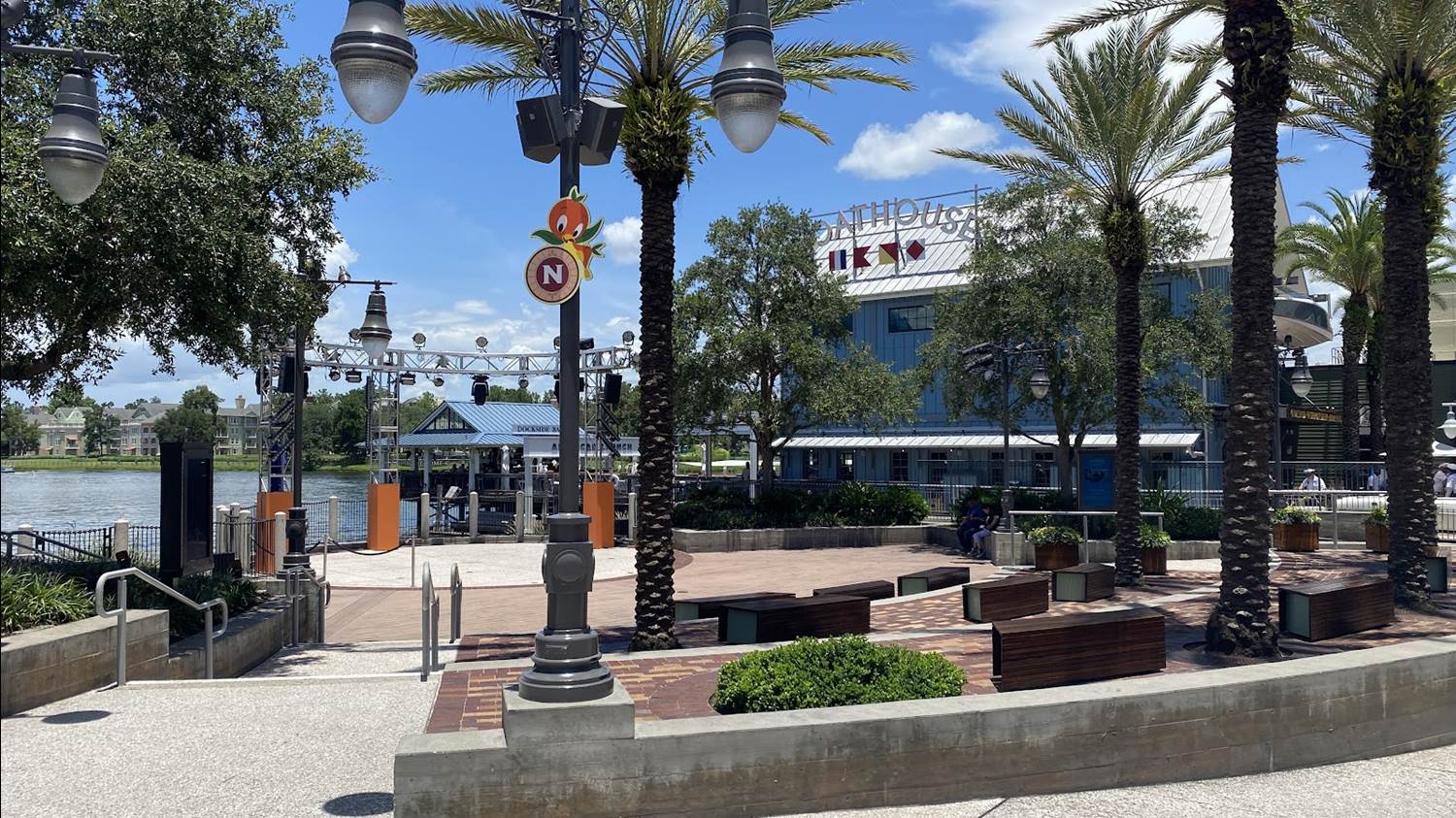 Let’s begin our trek back through the West Side heading toward The Landing, or, if you’re a Disney Parks fan of a certain age you likely still call this area “The old Pleasure Island." Here in The Landing, you’ll find the outdoor seating area and showplace adjacent to Jock Lindsay’s Hangar Bar but before The Boathouse.
