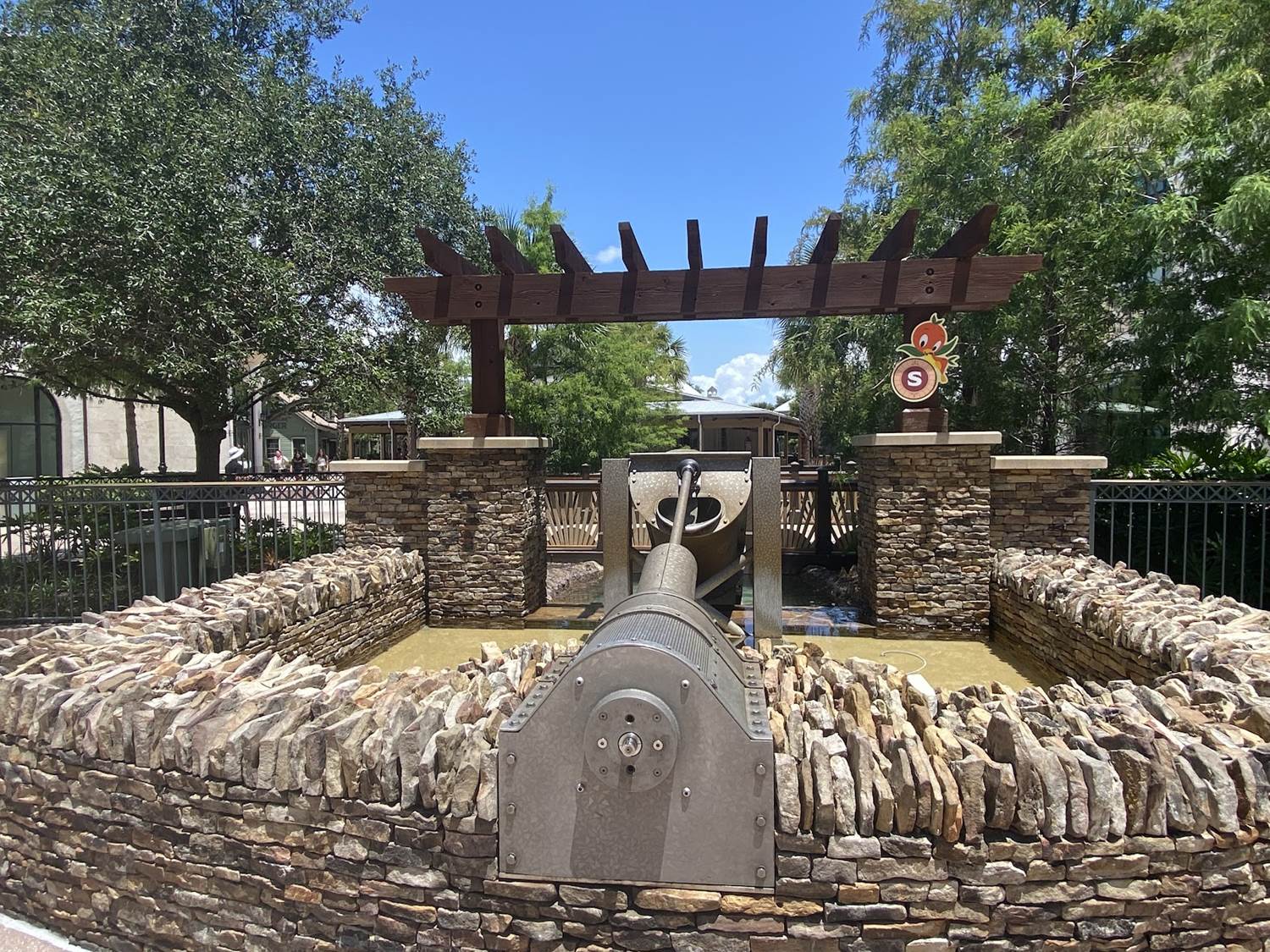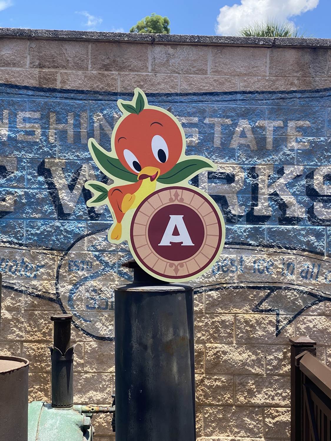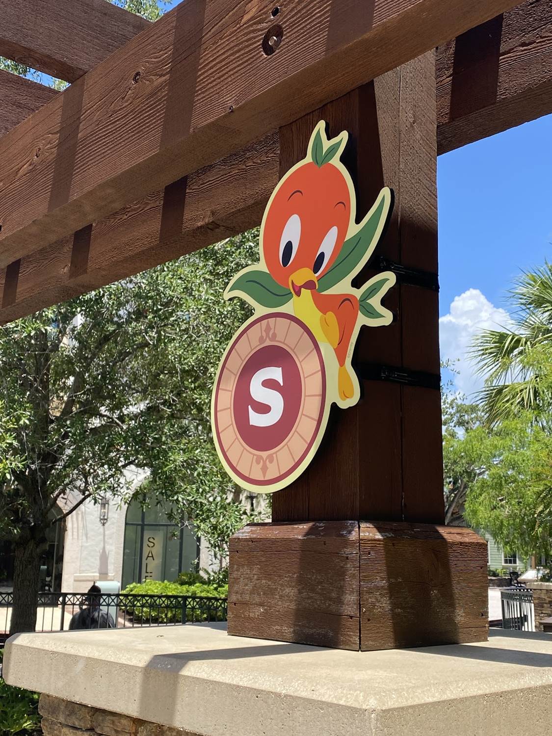 Our Journey begins in the center of Town Centre, near the Archimedes Screw that exists pretty much dead center in this area of Disney Springs. According to the Disney Springs lore, the crystal clear waters of the springs contained magical properties, as can by demonstrated by turning the wheel of the Archimedes Screw. Just above the screw and to the right, You’ll find our first Orange Bird location, anchored by the letter S.