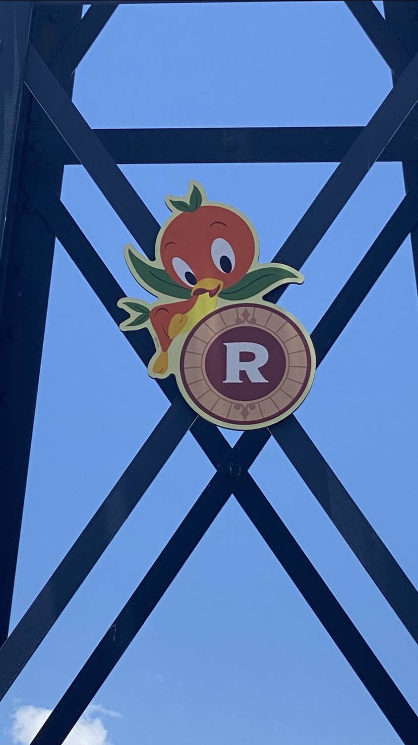 Here, Orange Bird can be spotted high on the supports of the bridge, accompanied by a letter R.