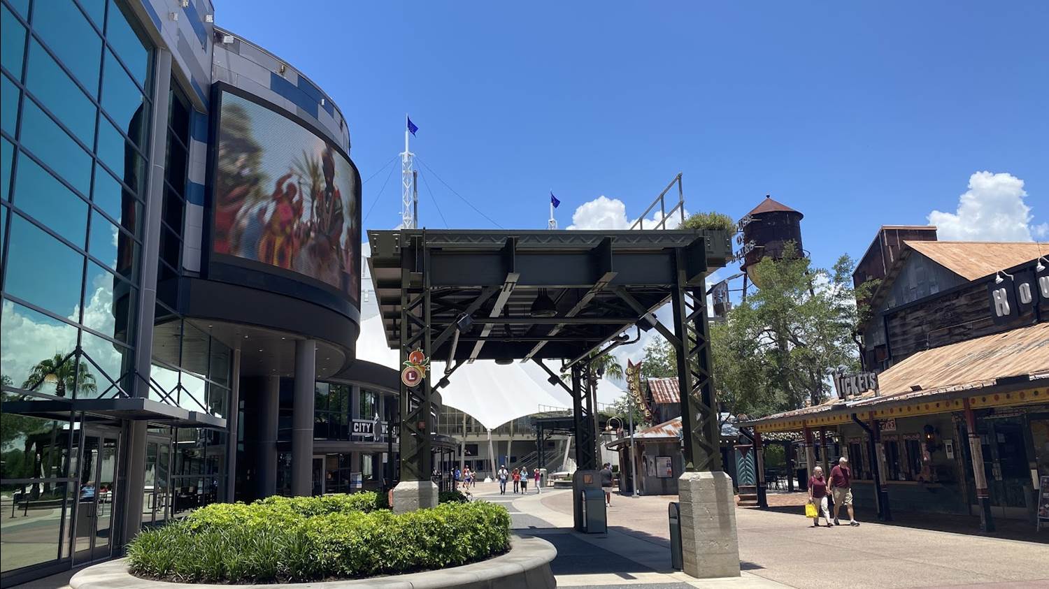 Continuing down West Side heading toward Cirque Du Soleil and City Works, you can still see sections of the fictitious Sunshine Railway’s elevated tracks dotted throughout the area. In The lore, they once connected Disney Springs to coastal communities in Florida and beyond.