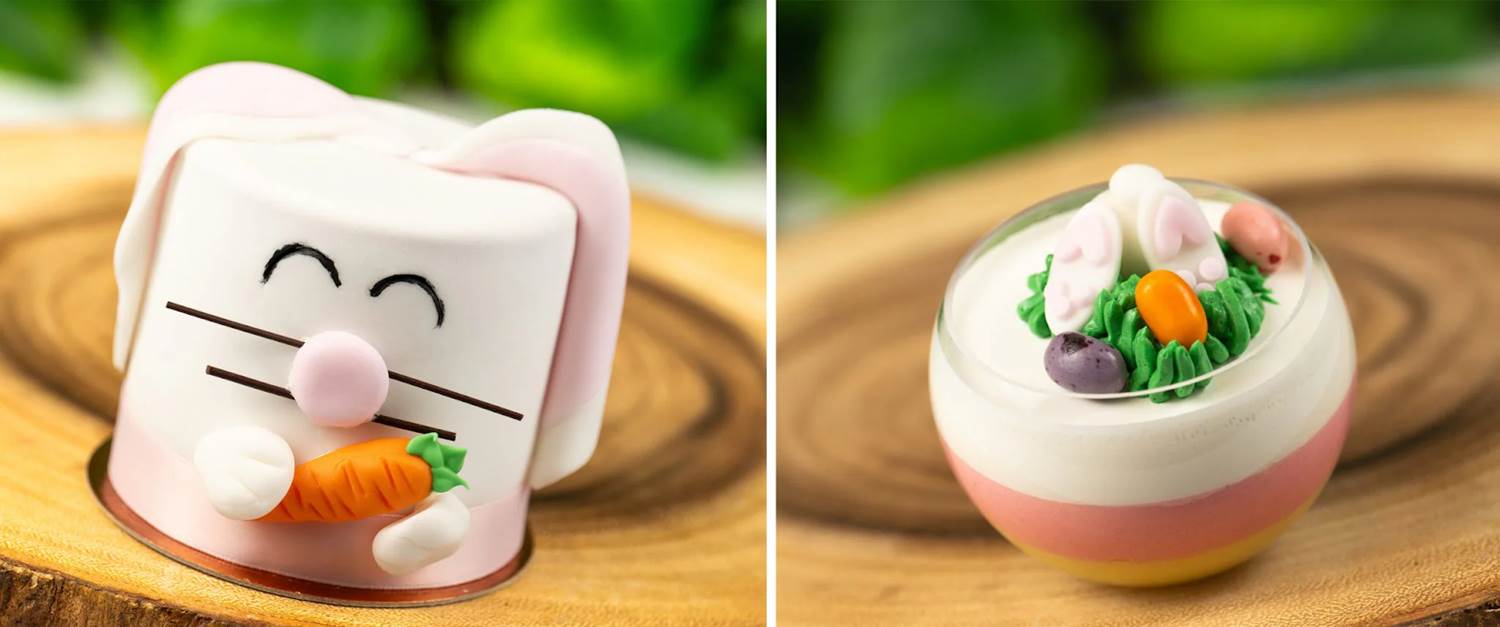- Easter Bunny Petit Cake: Layers of vanilla chiffon, berry compote, and cream cheese mousse (New) (Currently available through March 31)