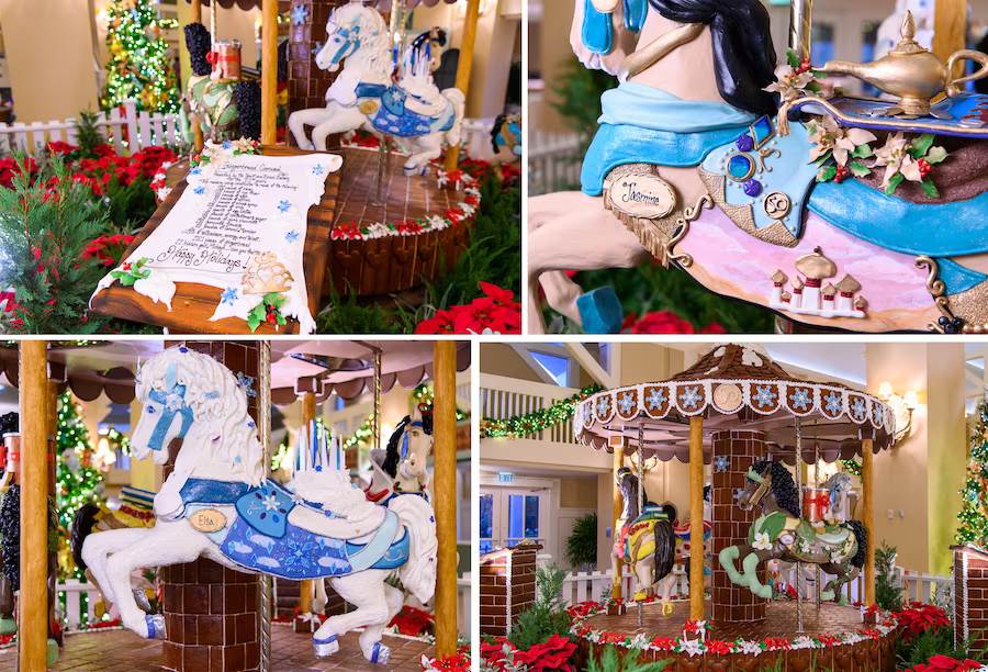 - Just next door at Disney’s Beach Club Resort, we’ve got the classic Holiday Carousel gingerbread display. The life-size creation has been at the resort for 22 years and it actually moves!