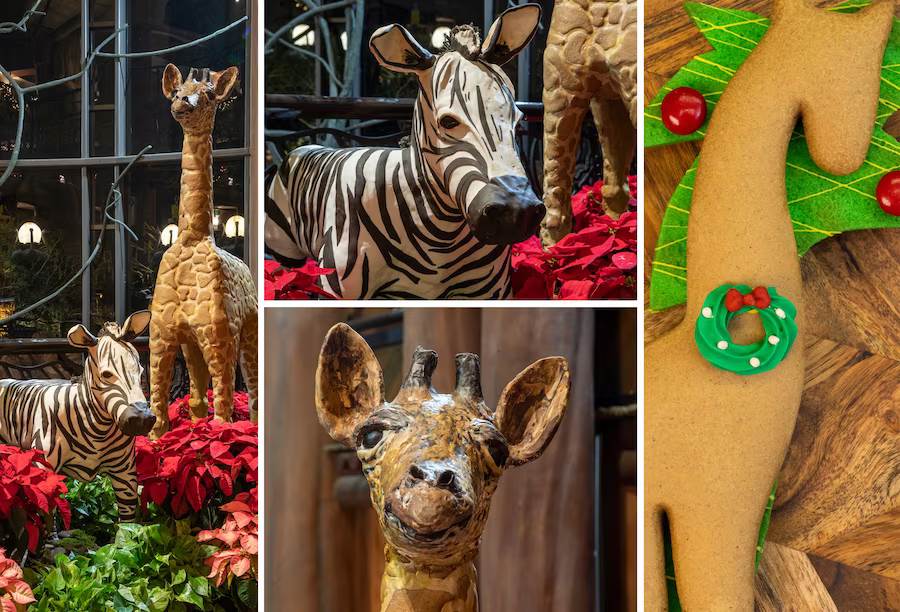 - Next up, let’s go on a tasty adventure to Disney’s Animal Kingdom Lodge where you’ll find one of the most adorable giraffes and zebras around. In the Jambo House lobby from November 22nd through December 31st, the Animal Kingdom Lodge bakery led by Pastry Chef Lexy Ross has continued the tradition with the Life-Size Baby Gingerbread Giraffe and Baby Zebra. This can’t-miss giraffe, or should we say ginger-affe, named Ginger and baby zebra, Debra, are made with a combination of gingerbread, sugar dough, and modeling chocolate. In fact, the giraffe stands near 7 feet tall.
