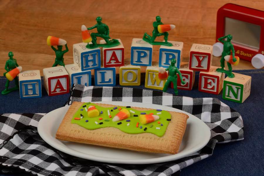 - Pumpkin Lunch Box Tart: Pumpkin pie-filled pastry tart with marshmallow fondant, candy corn, and Halloween sprinkles