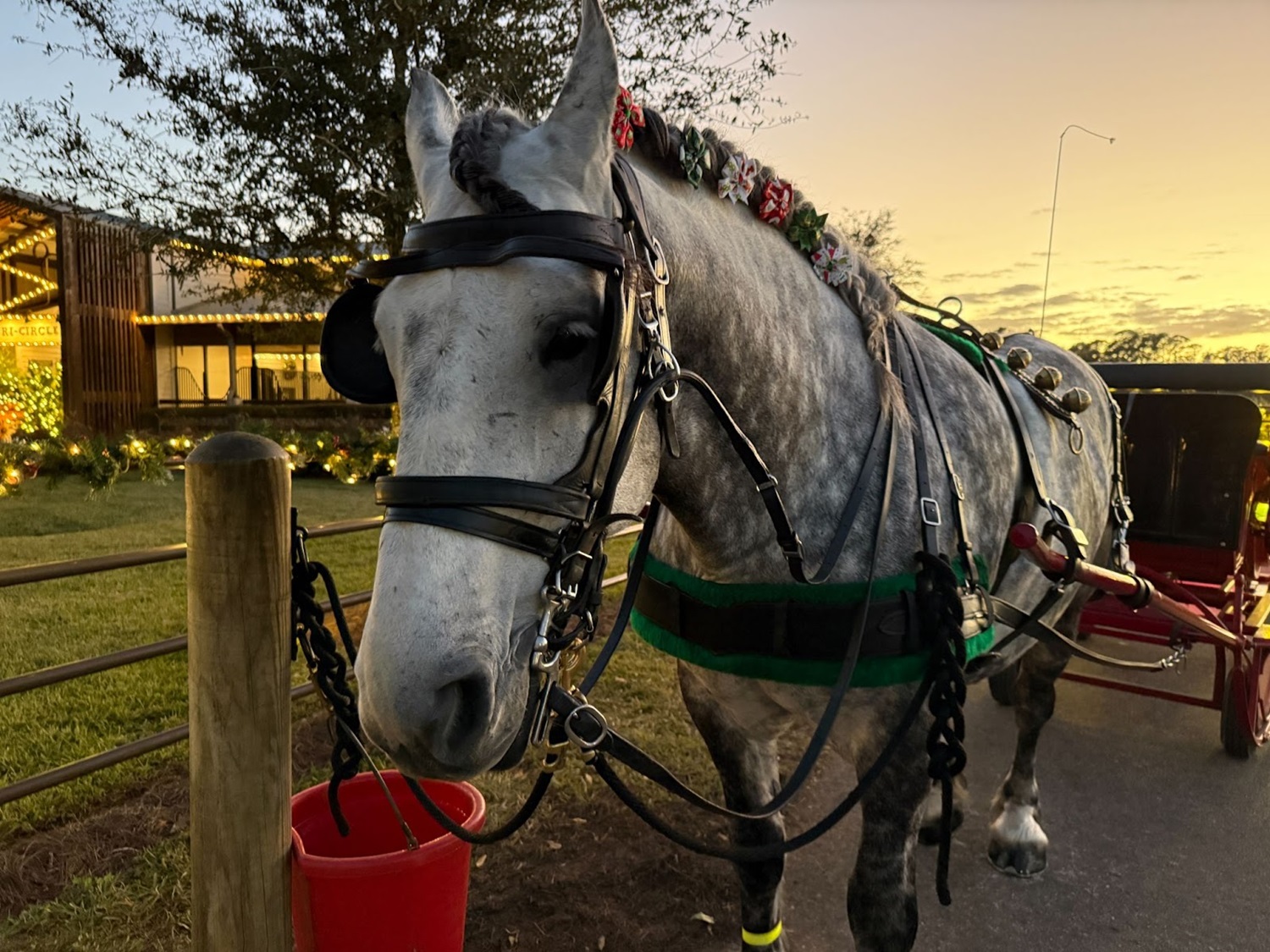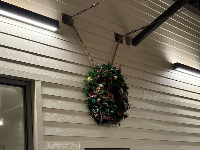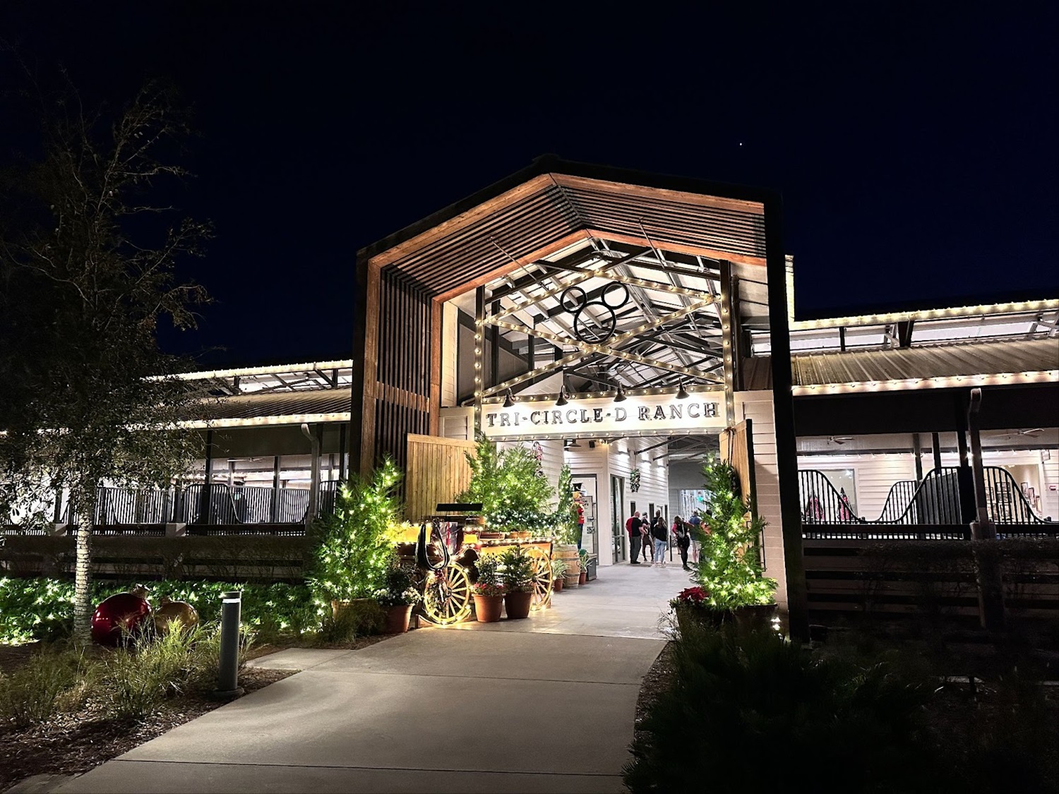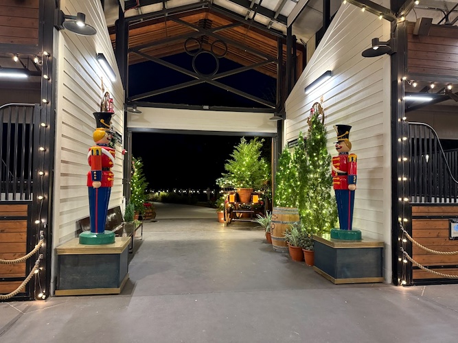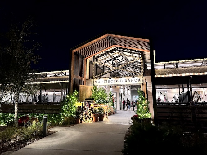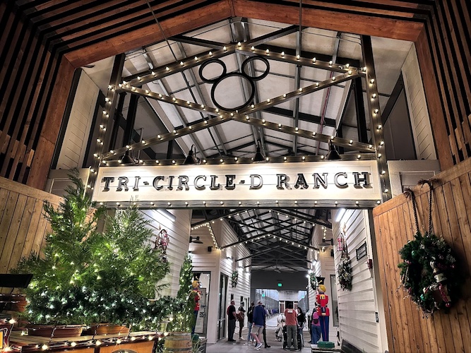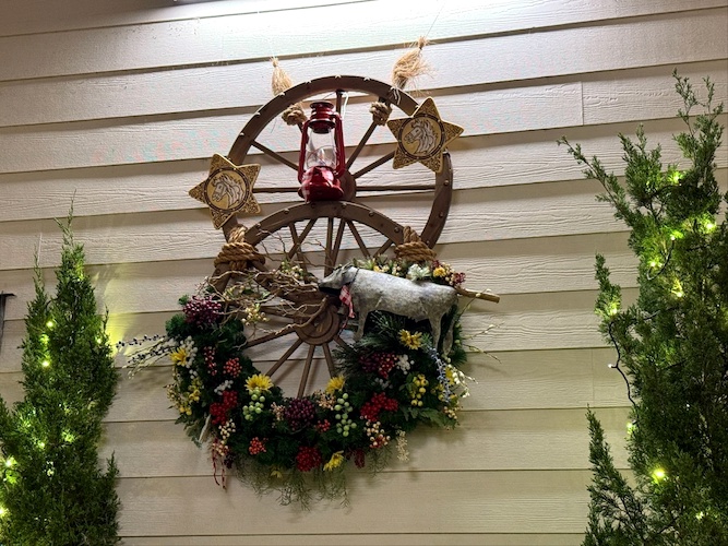 The gorgeous Tri-Circle-D Ranch also gets some decorations for the end of the year, with natural greens and white lights, not straying far from the beauty of natural Christmas trees.