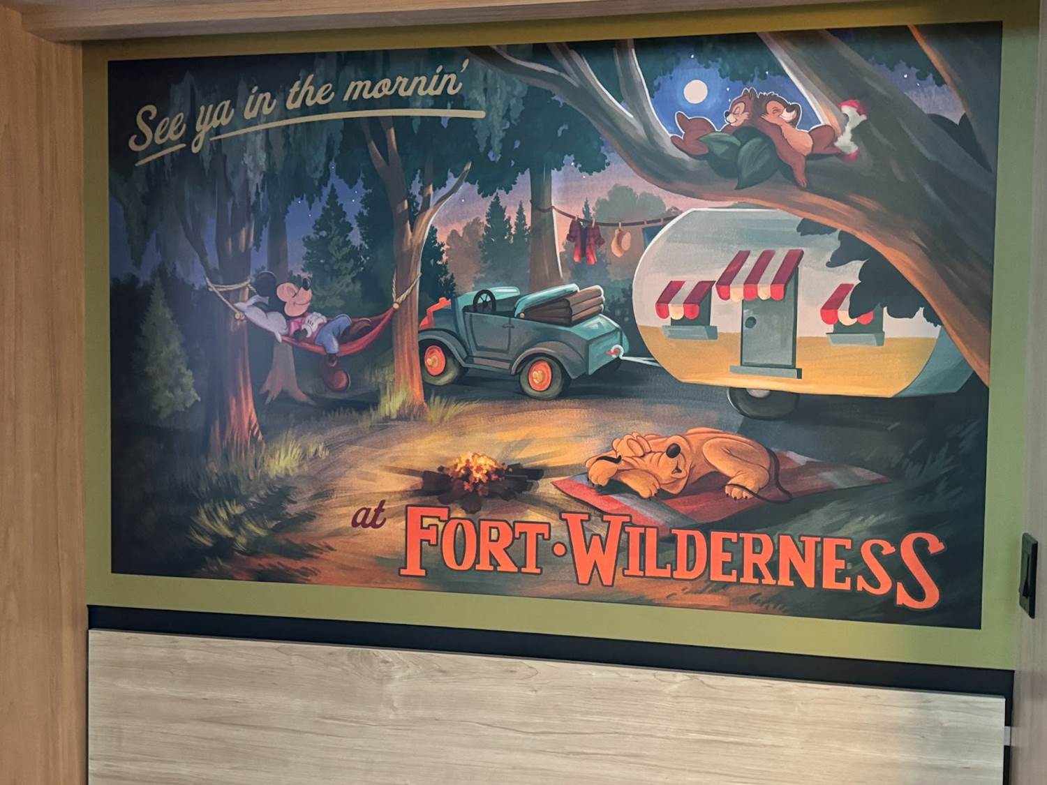 The new cabins feature a lot of Disney character motifs – such as this artwork that is perhaps inspired by the 1938 Mickey Mouse short, Mickey’s Trailer.