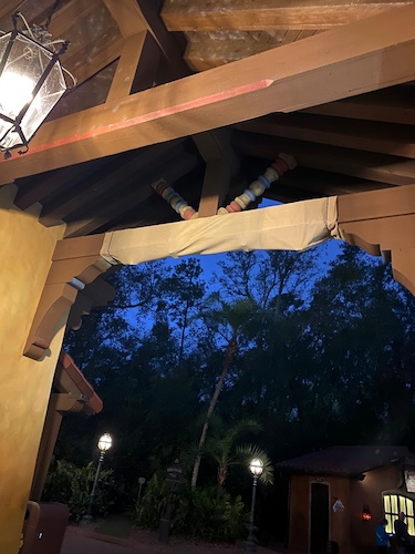 At some point in 2023, the Frontierland sign located between The Diamond Horseshoe and the former Frontierland Shootin’ Arcade was removed.