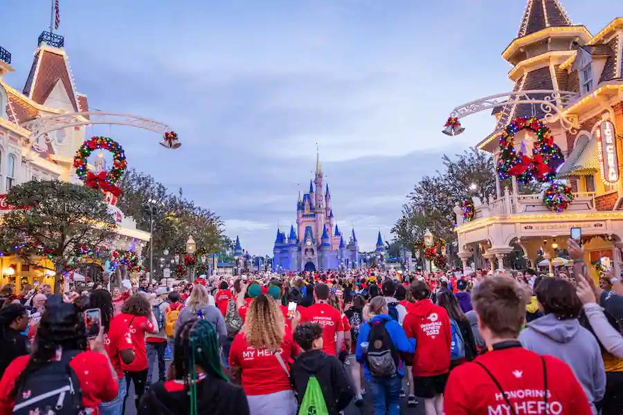 As the sun slowly rose on a chilly December morning, hundreds of family members walked from Town Square towards Cinderella Castle to participate in an emotional ceremony celebrating their fallen loved one as hundreds more cast members cheered them on with loving appreciation and support.
