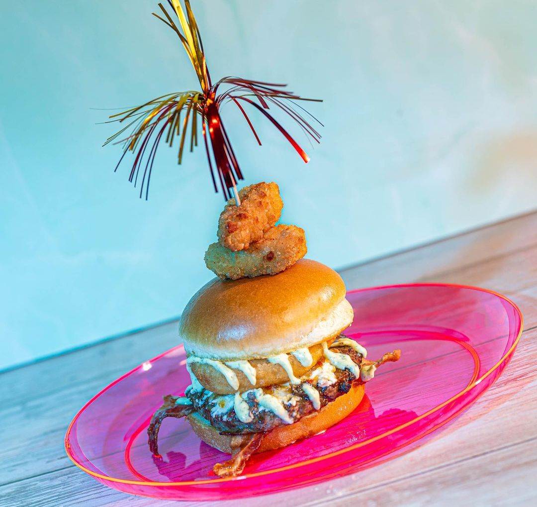 - NEW! Jalapeño Popper Burger at Leaning Palms: Angus bacon cheeseburger topped with pepper jam, cream cheese spread, an onion ring, and two jalapeño poppers