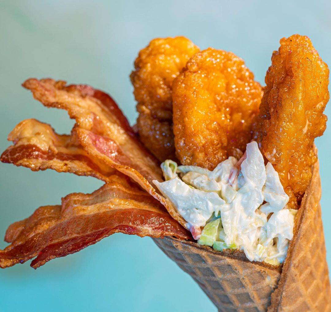 - NEW! Spiced Chicken Strip Waffle Wrap at Typhoon Tillys: sriracha and maple-spiced chicken strips with bacon and coleslaw wrapped in a specialty waffle