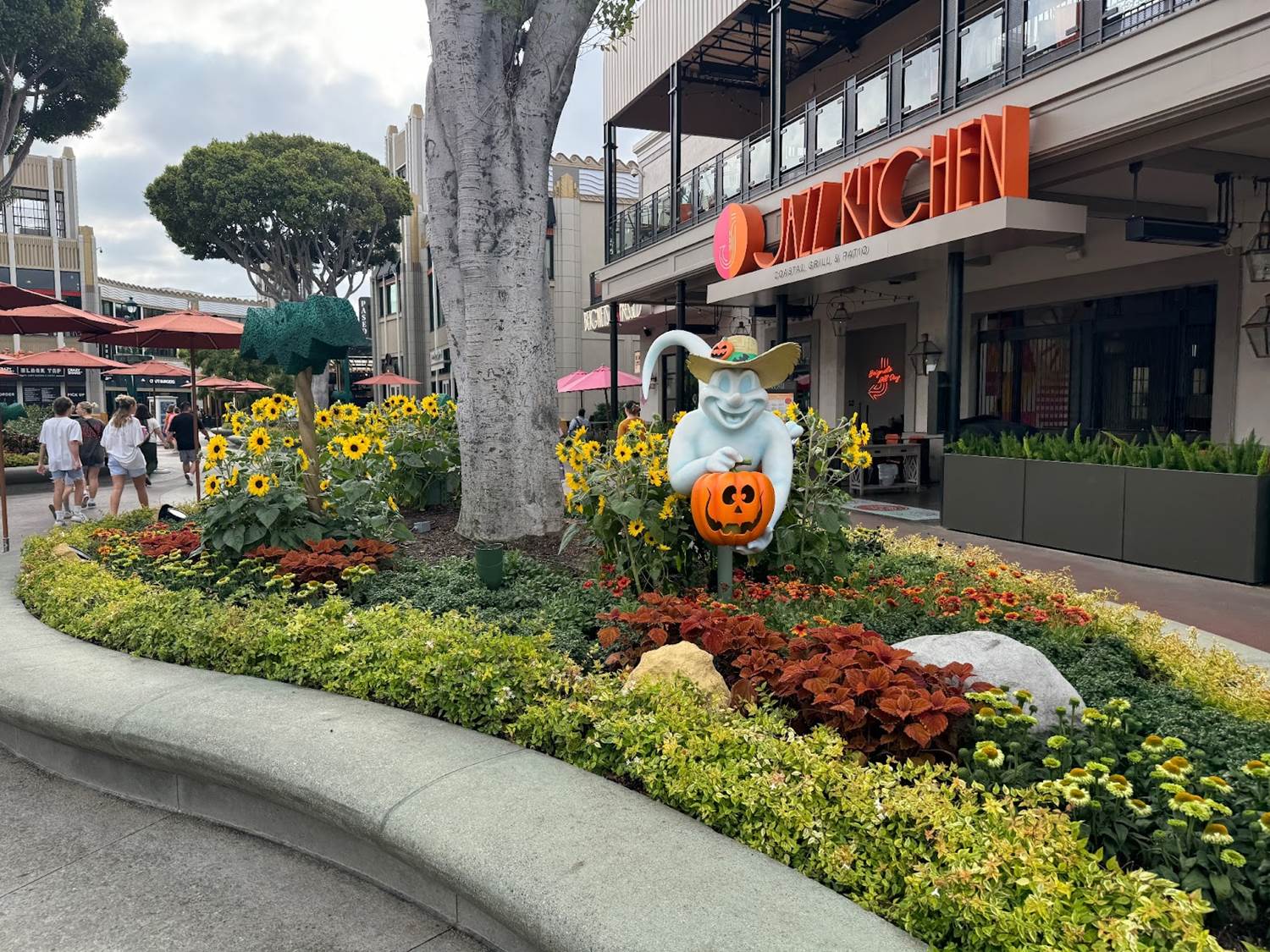 As guests approach Downtown Disney from the parking lot, banners can be found featuring the iconic Mickey pumpkin that calls Main Street U.S.A. home each year. Once inside Downtown Disney, you’ll find these delightful trick-or-treating ghosts in some of the planters, along with some bat-shaped topiaries.