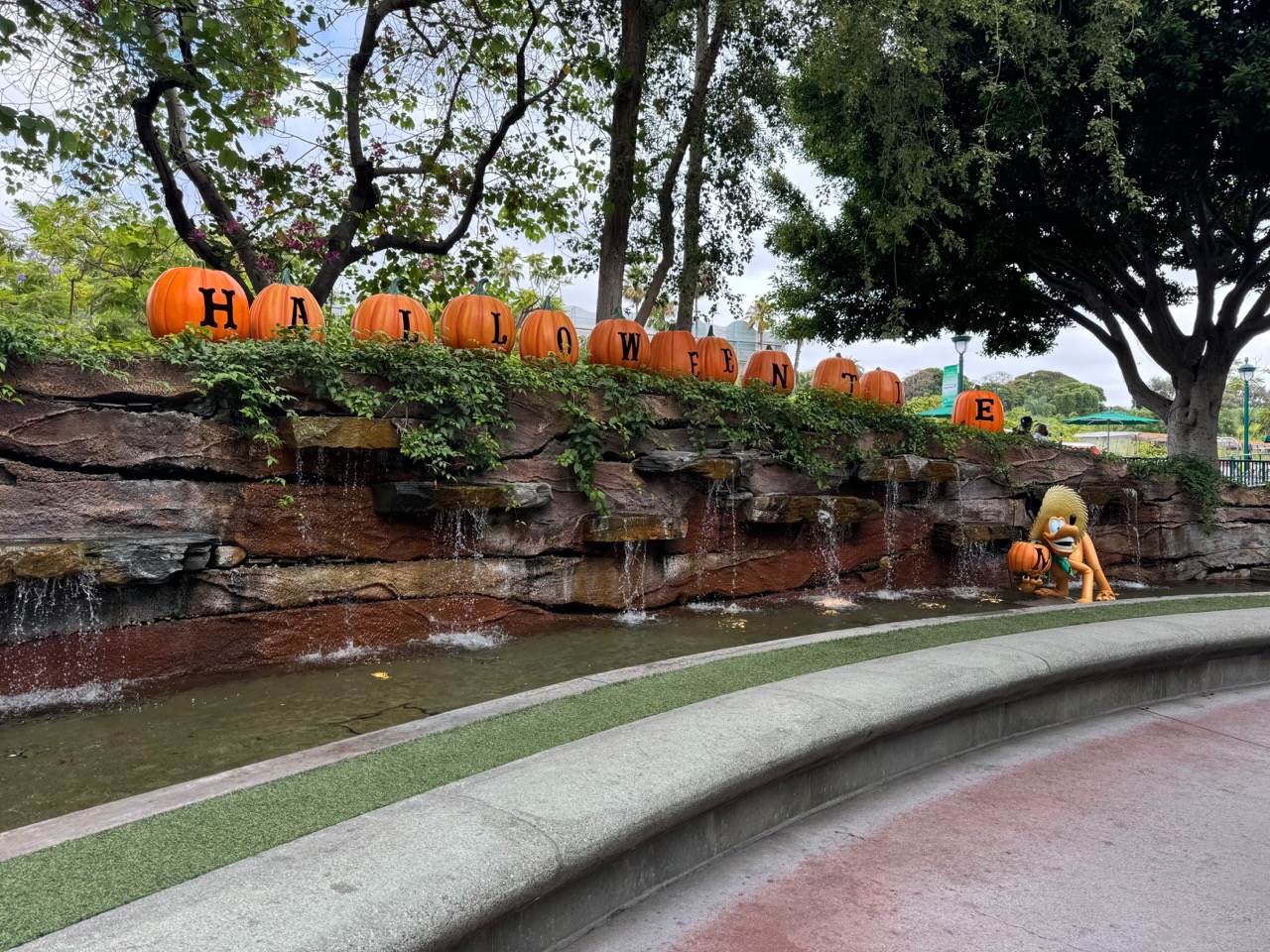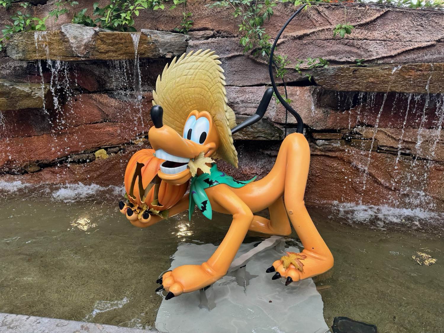 Over by World of Disney, this delightful display featuring Mickey, Minnie and Pluto, that once featured along the tram route, can now be found alongside the small waterfall.