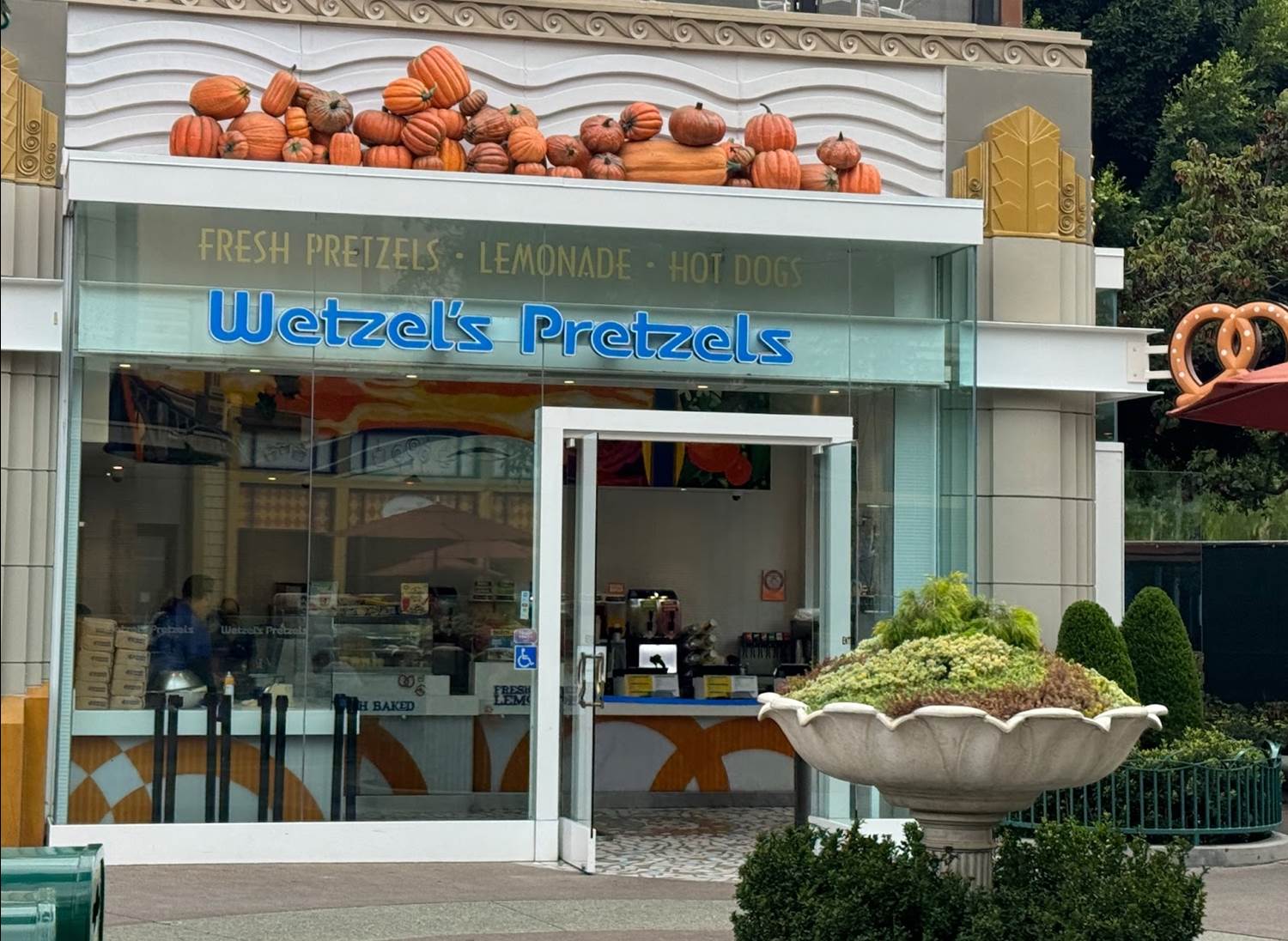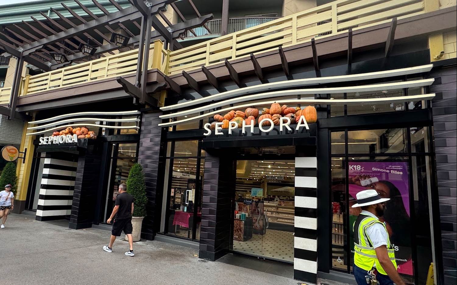 Donald features as a joyous wizard on top of a pumpkin in this display near Sephora and Napolini.