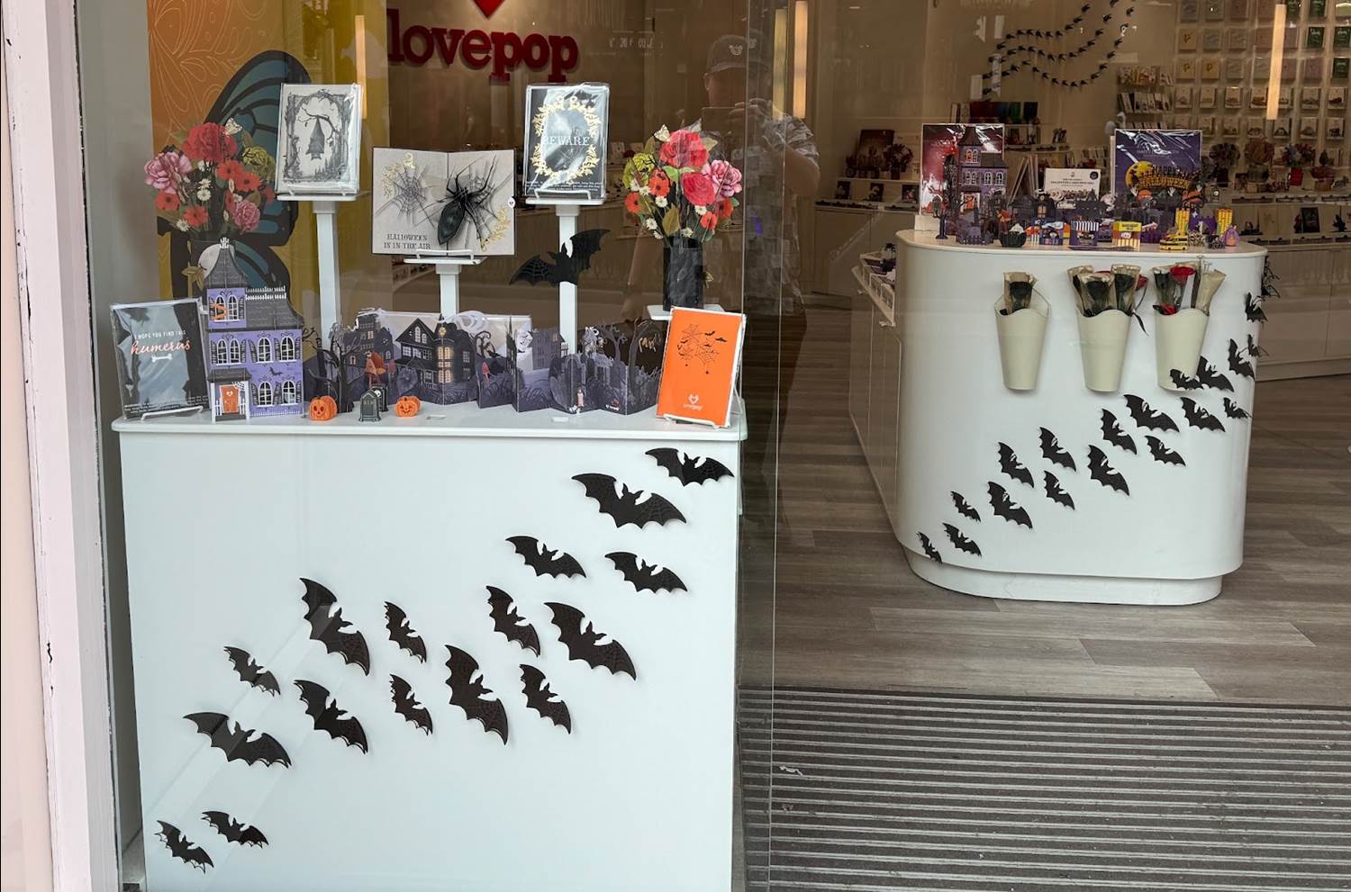 Some of Lovepop’s wonderful Halloween-themed cards are on display in their windows.