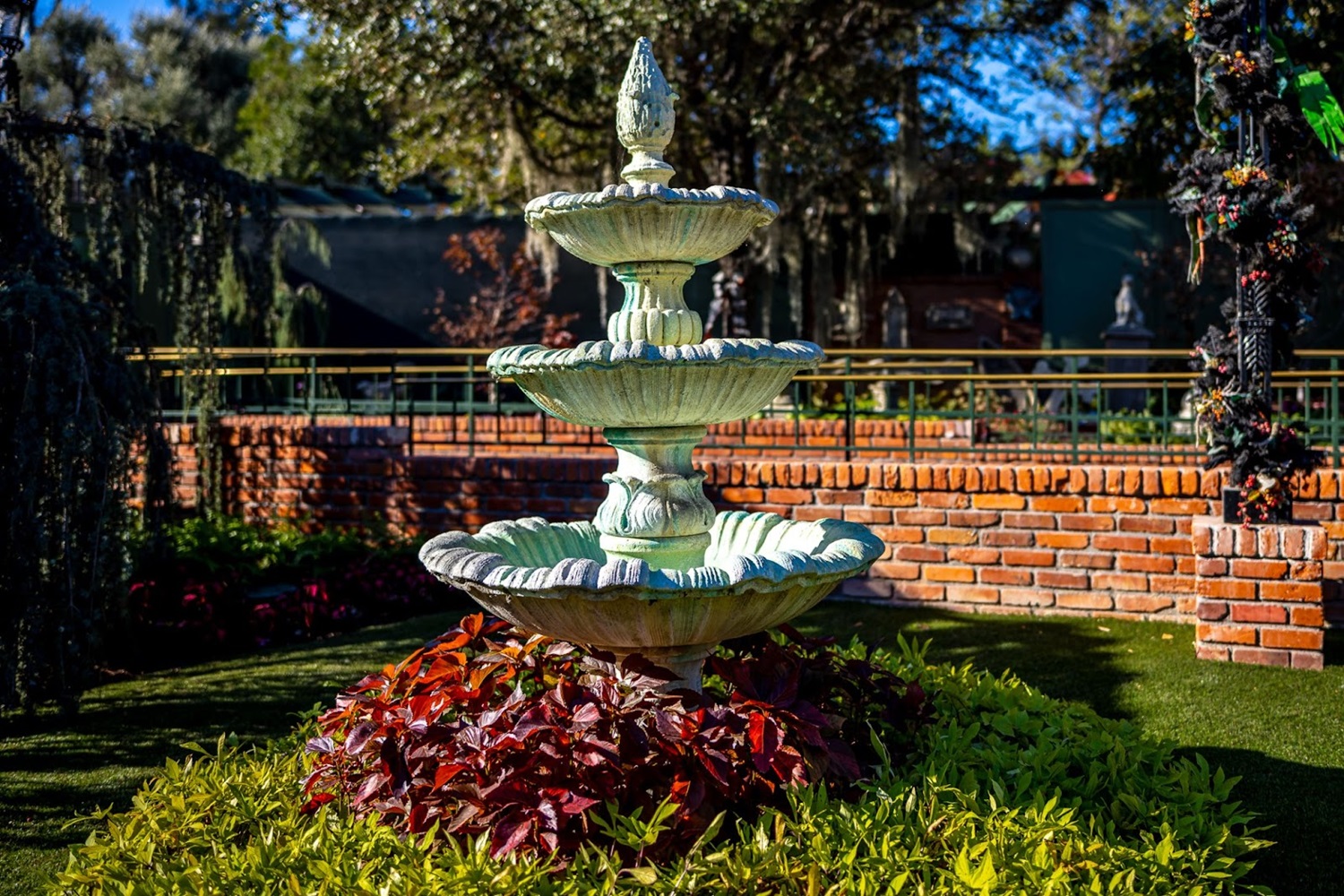 - The new expanded garden grounds also feature the re-installation of the fountain that was found outside the Mansion gates in nearby Magnolia Park, which can now be found when entering the new queue.