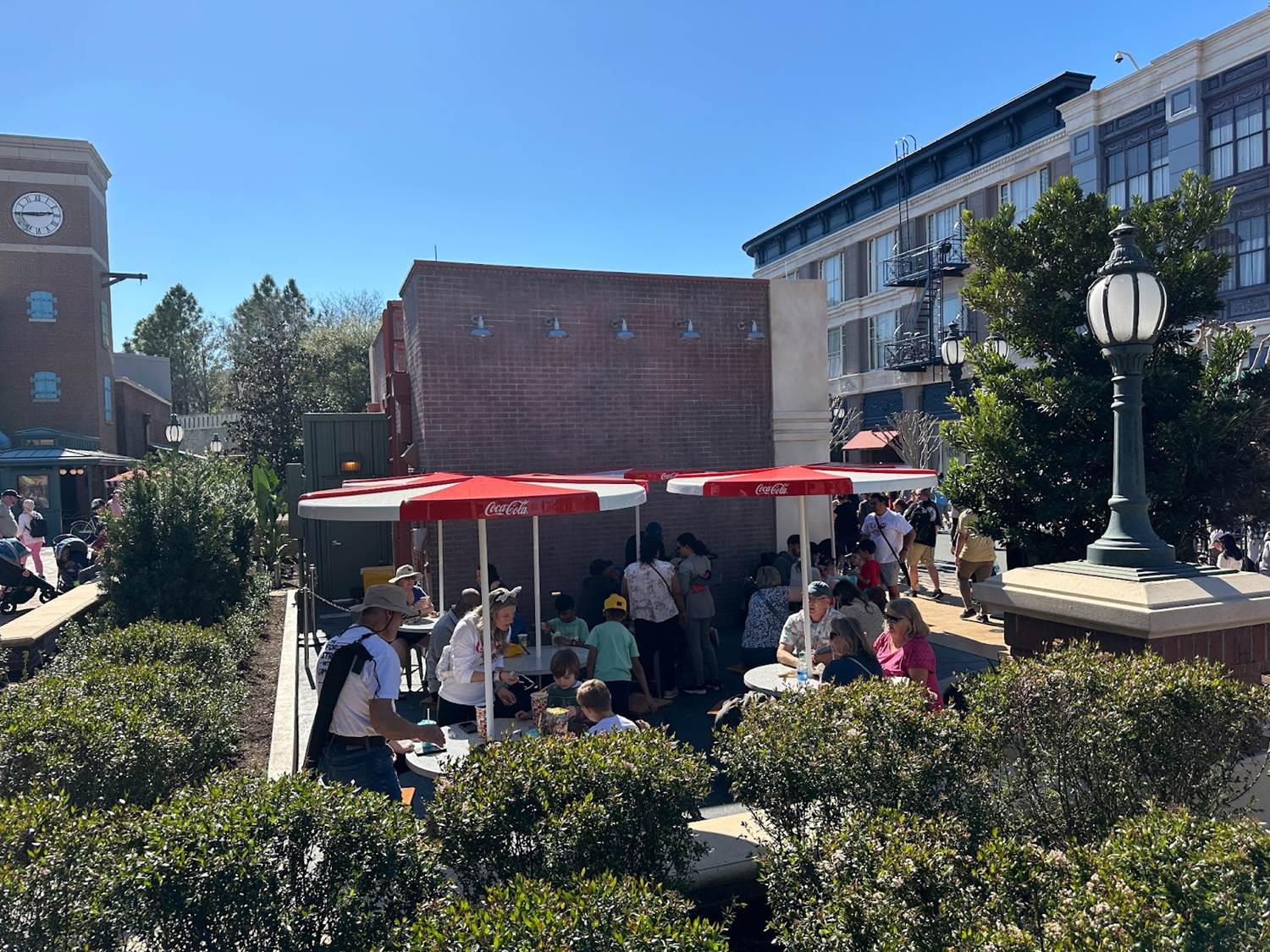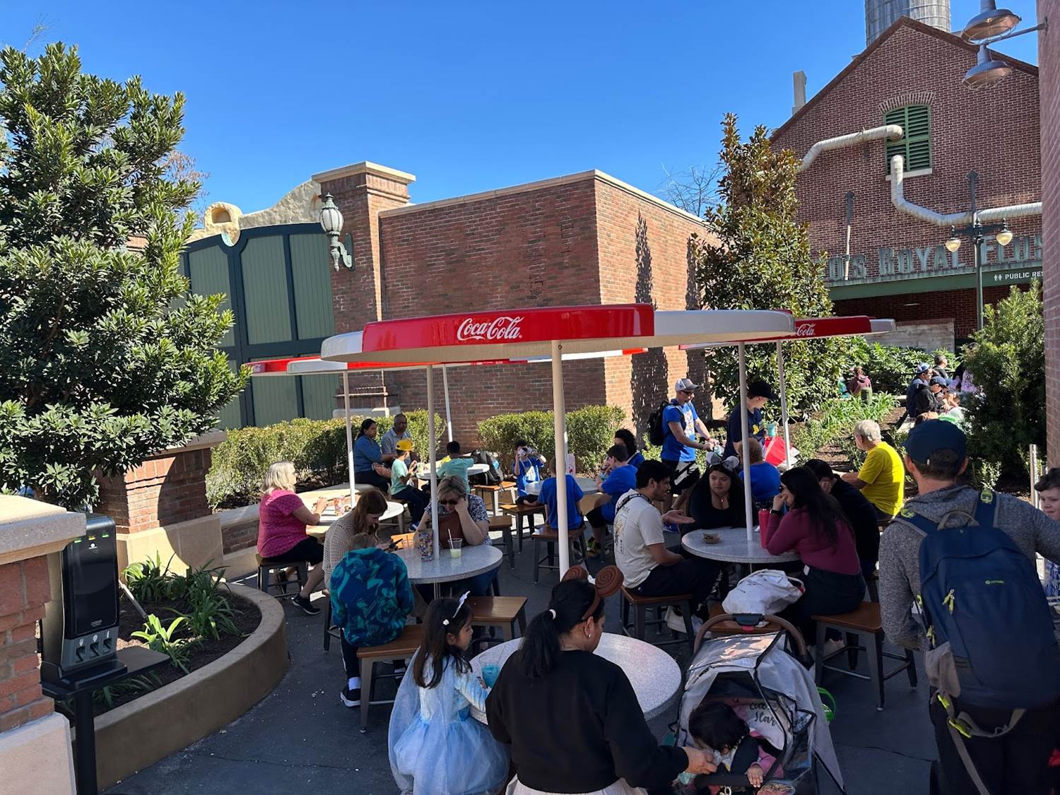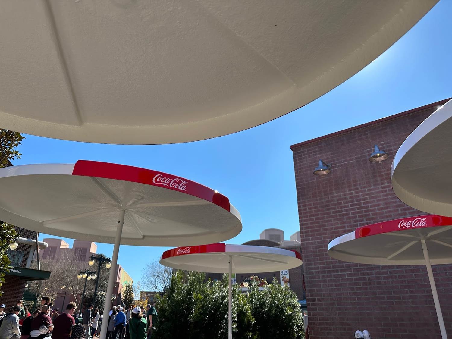 - A decent amount of shaded seating is provided underneath these Coca-Cola branded umbrellas.