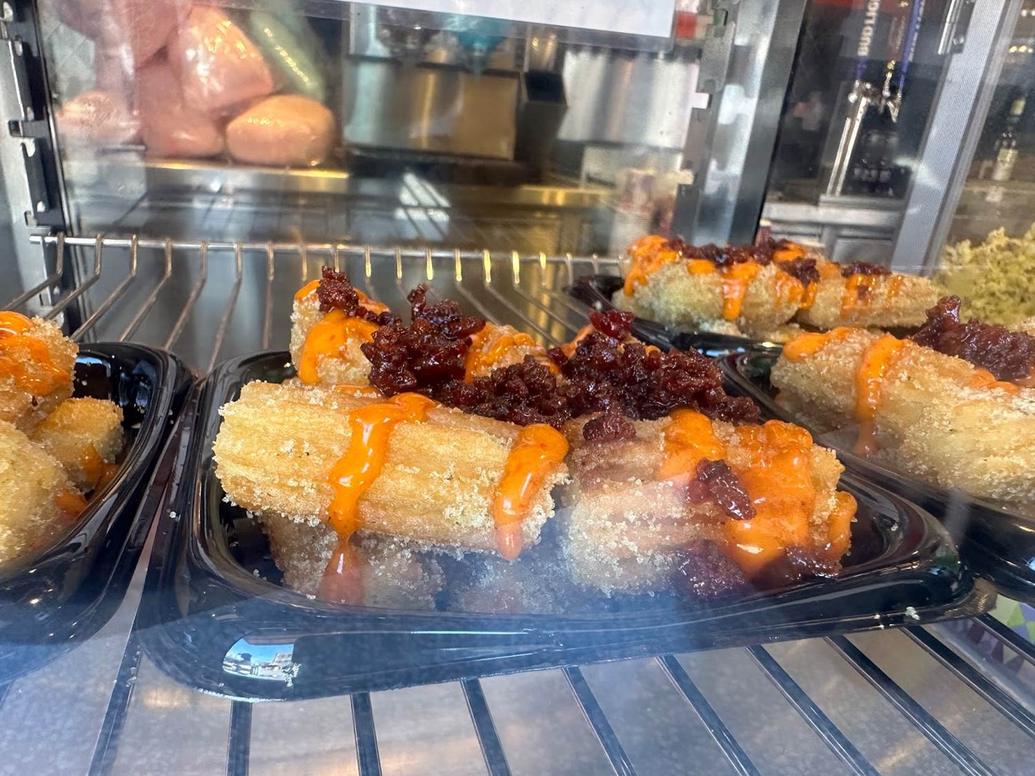- Bouncin' Mini Churros: Savory churros topped with Coca-Cola and bourbon candied bacon, sriracha aïoli, and scallions