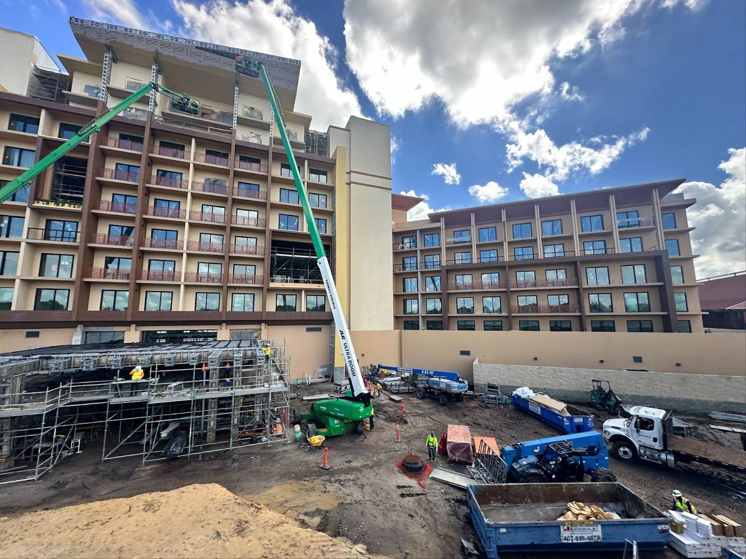 The iconic Disney resort’s new Disney Vacation Club tower is nearing completion. Additionally, work is occurring in the lobby.