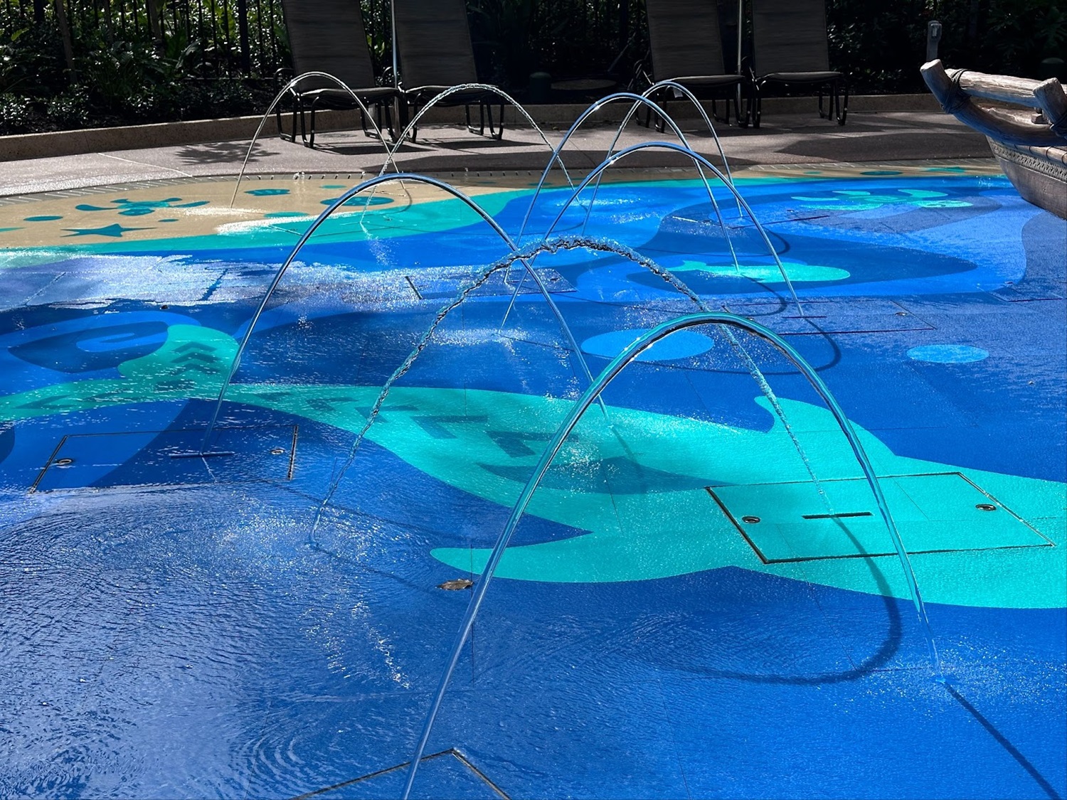 The new pool area offers guests a serene and playful place to sit back and relax during their stay. While the standard pool and hot tub area offer the classic splashing good time found at other Walt Disney World Resort hotels, the real star of the show here is the Moana-inspired splash pad. Called Moana’s Voyage, the area features water jets, themed soft flooring and a statue of Moana herself where smaller kids will be able to let their imaginations traverse the oceans.