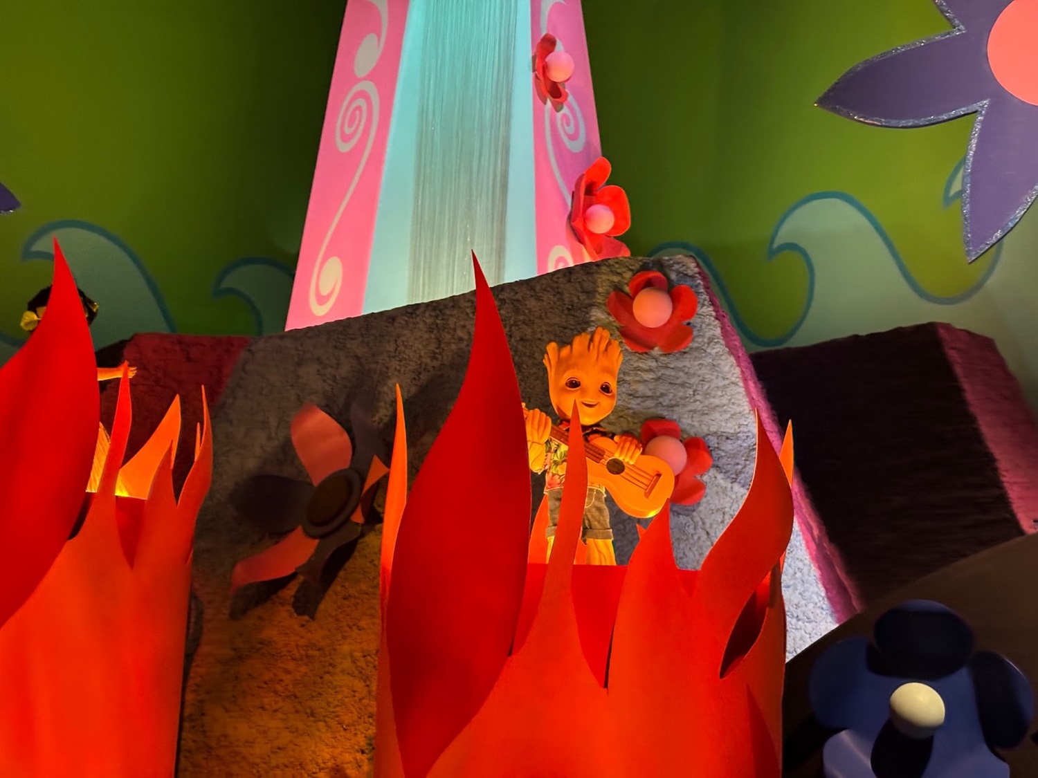 - Groot features in many different outfits and stylings throughout the attraction, alongside many other characters from the Marvel Cinematic Universe. Who do you spot?