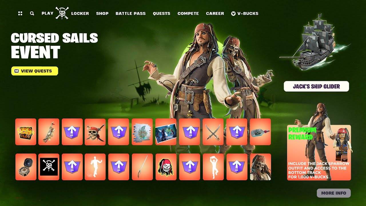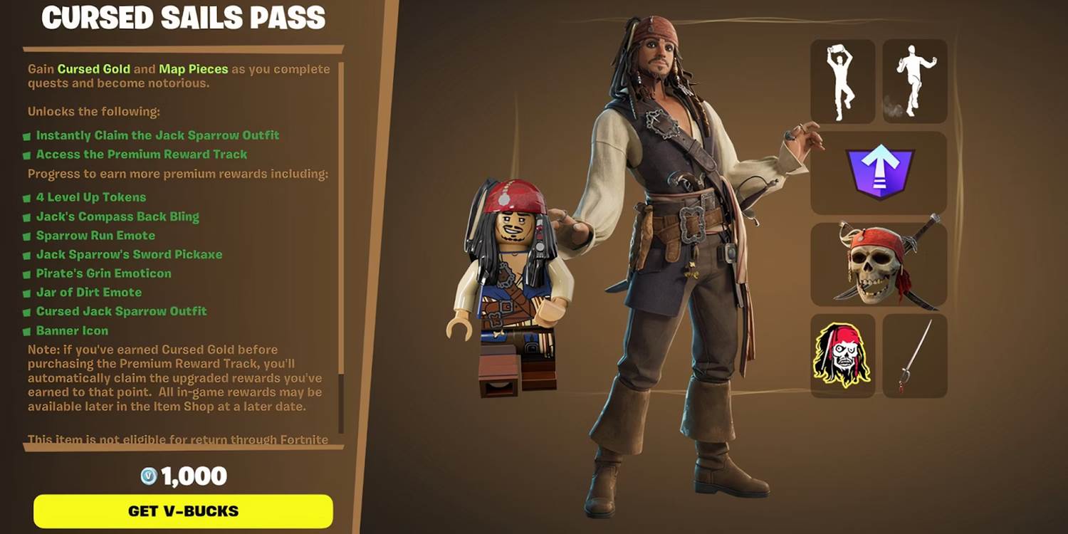 - As a part of the Cursed Sails Pass, Captain Jack Sparrow will join the Epic Games battle royale game as a new character skin.