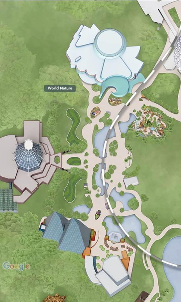 - Here’s a look zoomed further out, showing how Journey of Water fits in with its surrounding attractions, such as The Seas and The Land.