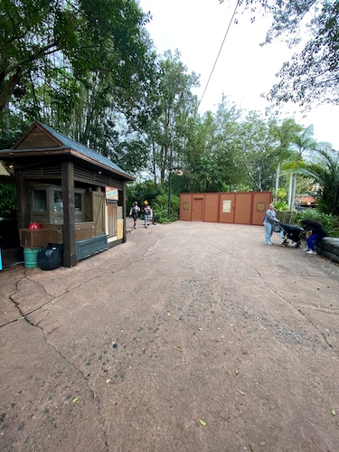 Construction walls block off access to the exit area of the attraction.