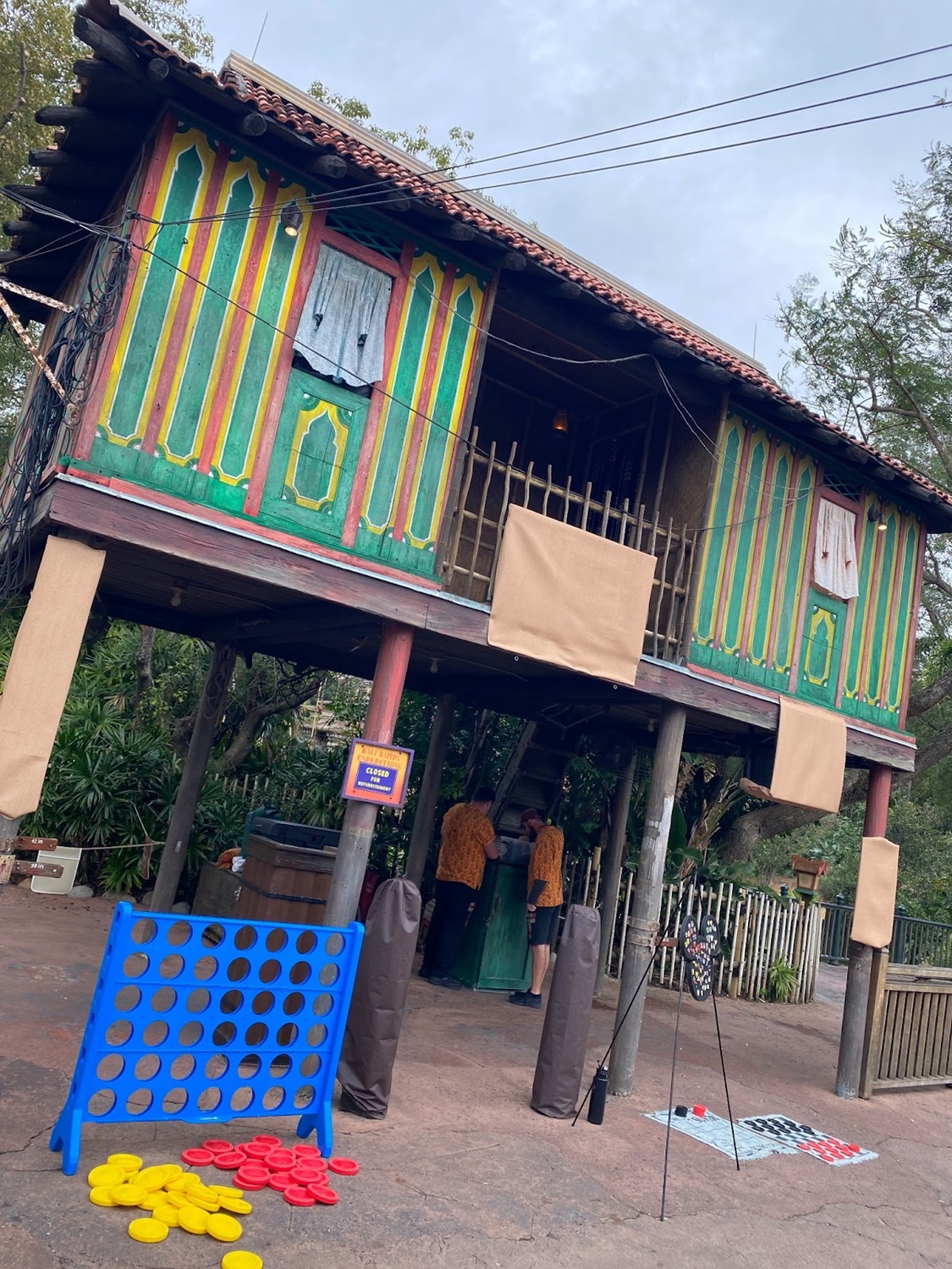Meanwhile, the attraction’s entrance has seen its signage covered up, while cast members stand outside ready to play some games with guests.
