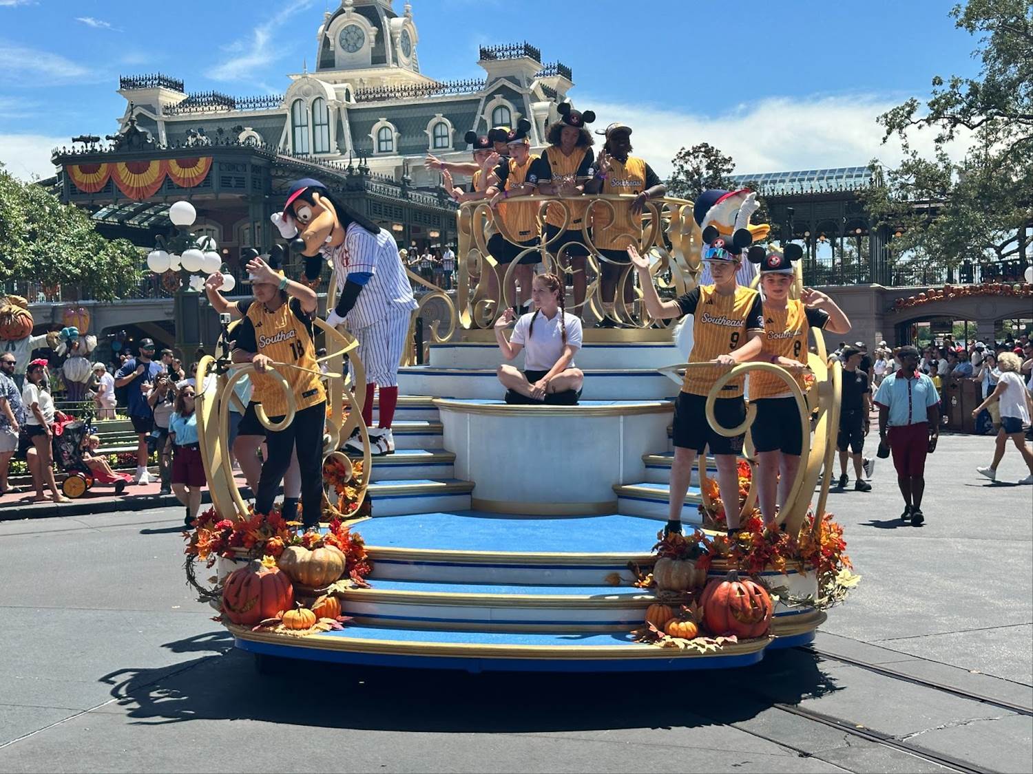 - Kicking off the parade with confetti and fireworks, the team, coaches, Mickey, Donald and Goofy were showcased throughout the hub and down Main Street, U.S.A.