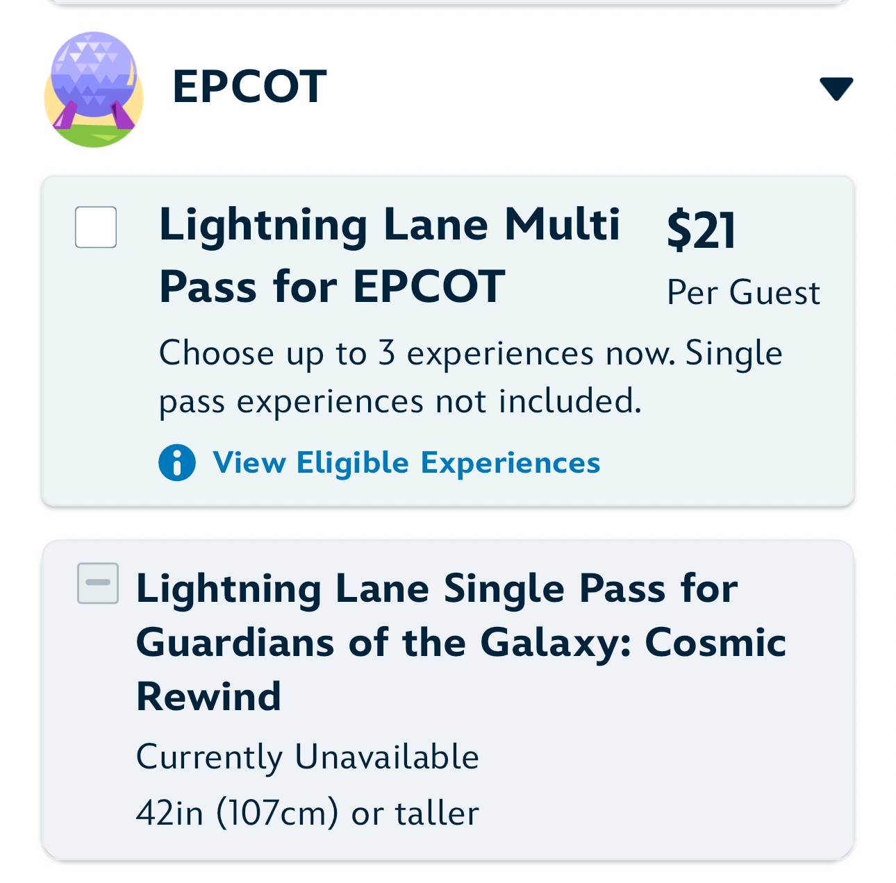 - EPCOT Guardians of the Galaxy: Cosmic Rewind $17