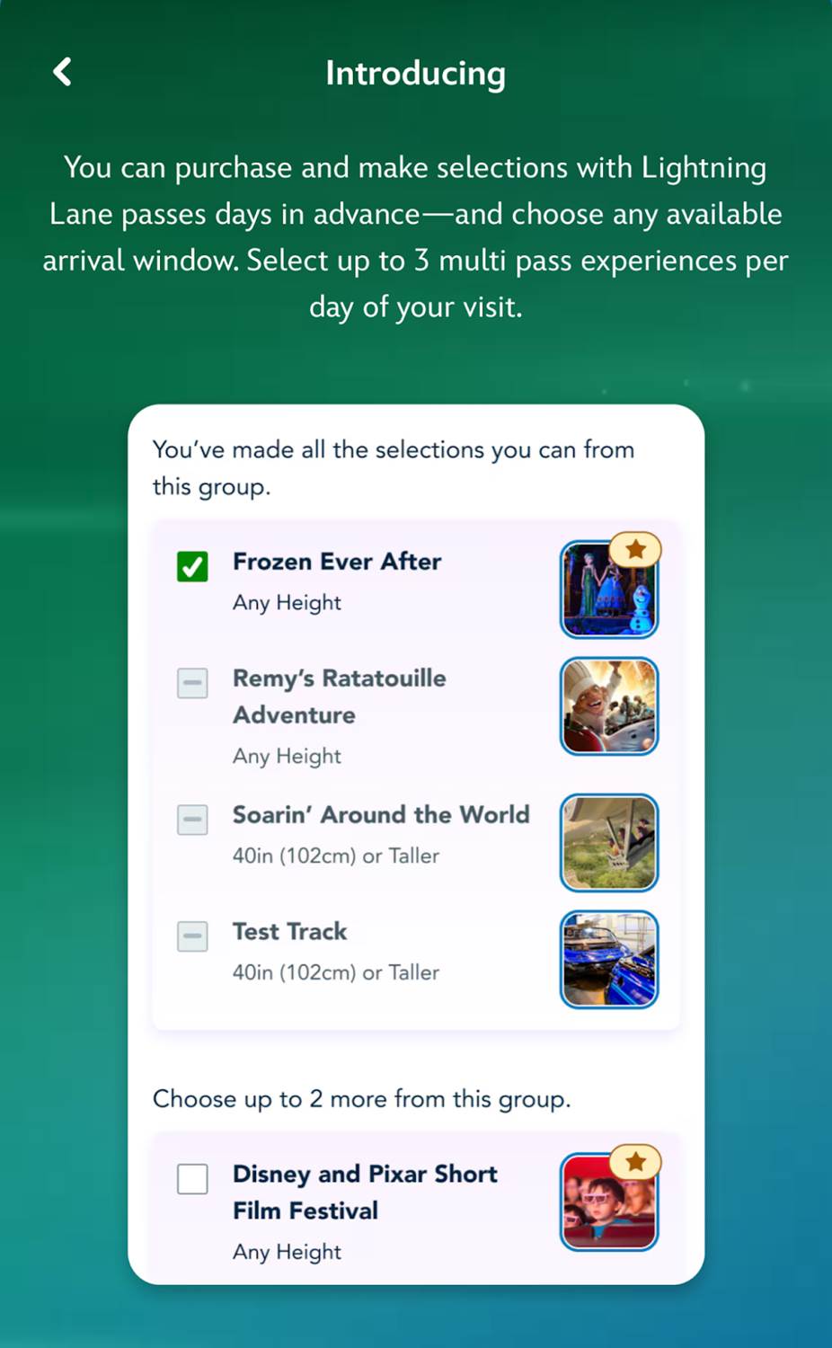 - Walt Disney World Resort guests can now make their Lightning Lane selections up to seven days in advance, while non-resort guests can do so three days in advance.