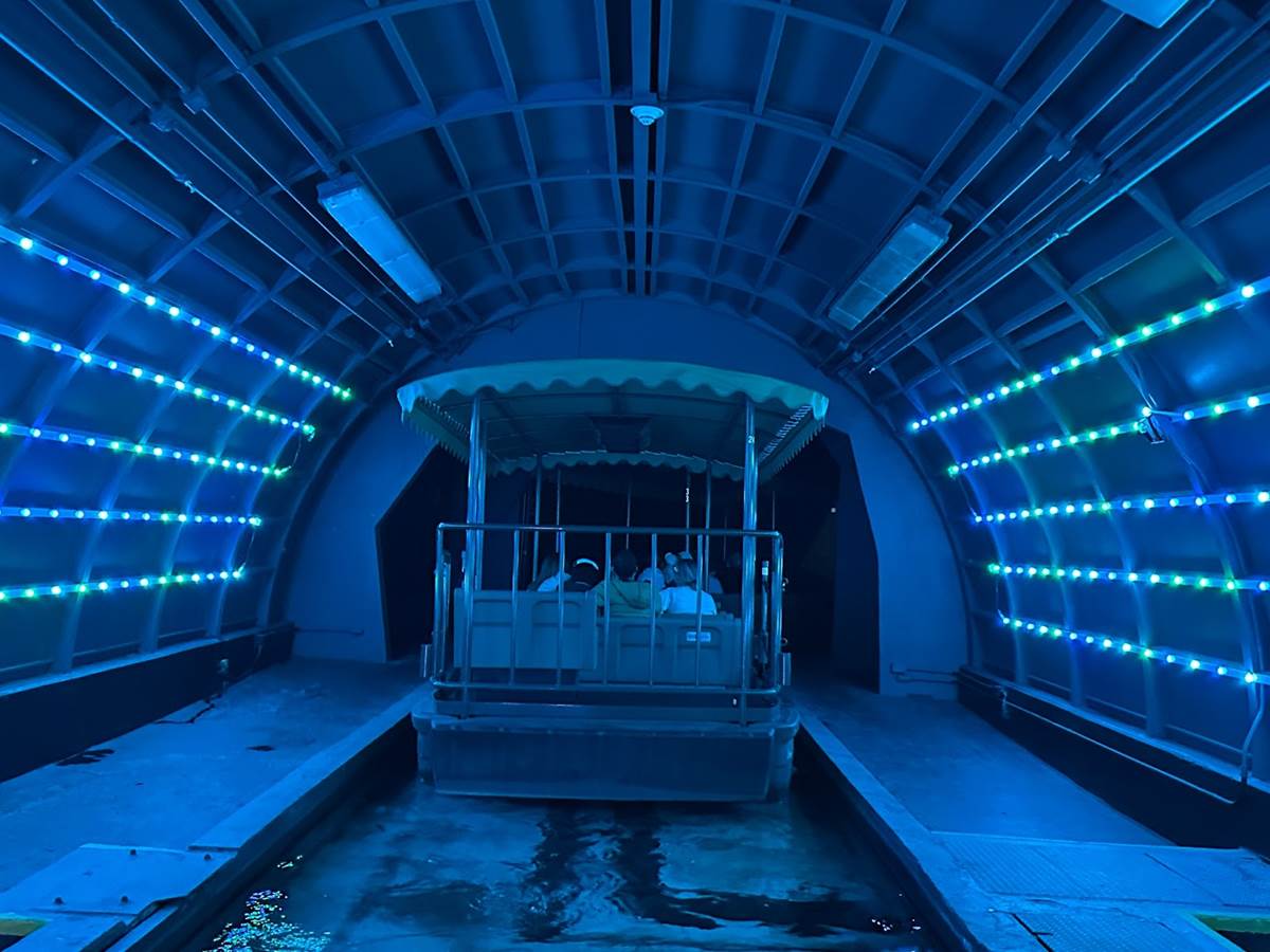 Just like the regular version of Living with the Land, guests can see firsthand how Walt Disney World horticulturalists are using innovative growing techniques and cross-breeding high-yield crops to help feed a growing plane on this peaceful boat ride through the greenhouses. The classic attraction also features a new narration on the boat that is holiday themed, so even though the attraction shines brighter at night it is still different during the daylight hours.