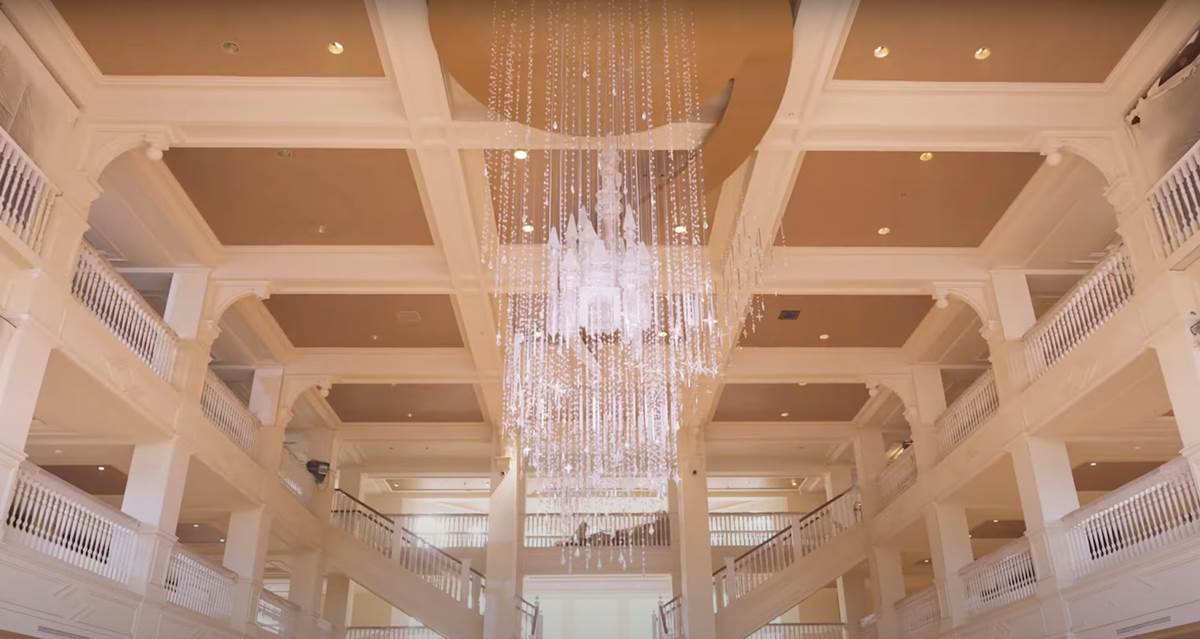 Impressive New Chandelier Hangs Over the Lobby of the Reimagined Disneyland Hotel at Disneyland Paris