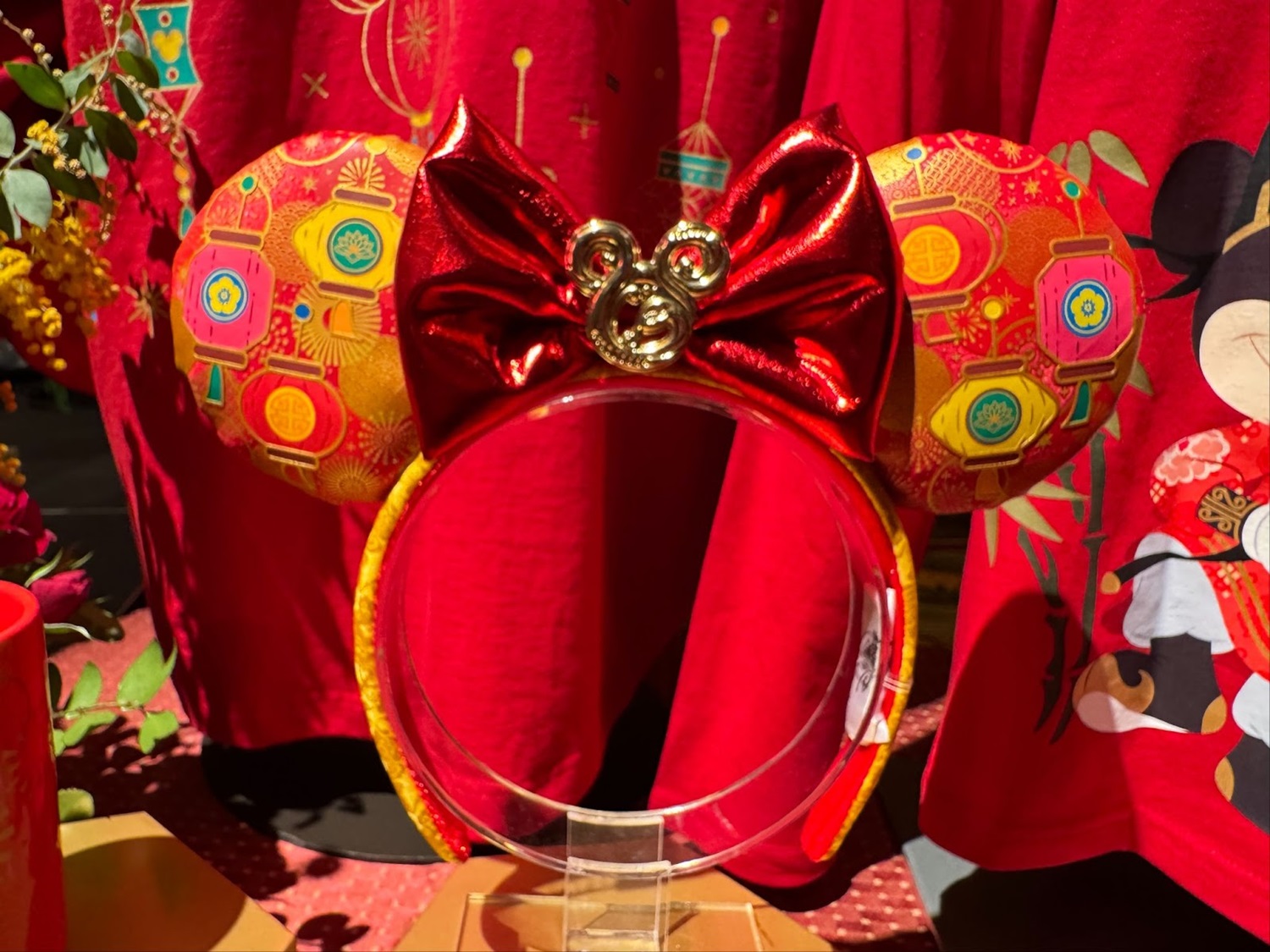 The headband for this year’s festival includes a metallic red bow and a lantern pattern on both of the ears.