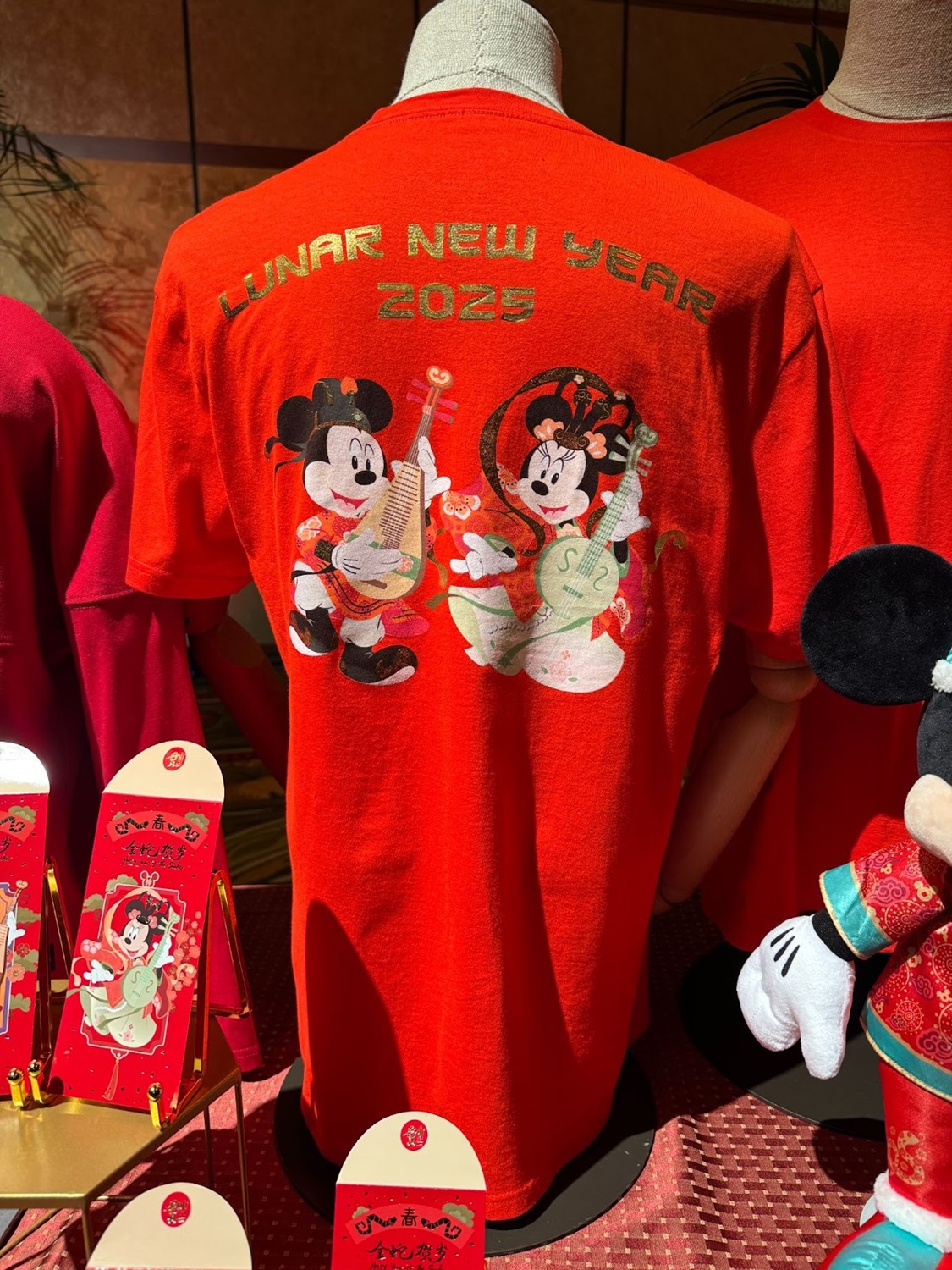 As is often the case, the celebration includes t-shirts, Minnie ears, and spirit jersey designs that evoke the imagery synonymous with the holiday (and the knowledge that 2025 is the Year of the Snake when looking at the Chinese Zodiac).