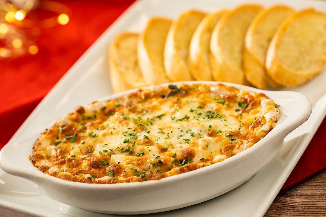 - Mushroom, Artichoke, Cheese Dip: Goat cheese, tomatoes, and toasted crostini
