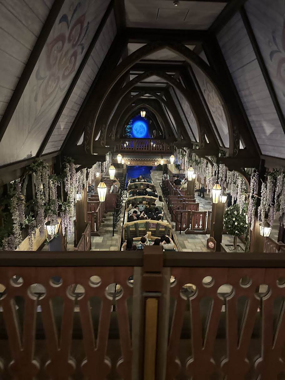 Traveling down the path, you’ll see Frozen Kingdom dominated by Arendelle castle and Elsa’s Ice Palace looming over the surrounding village. Unfortunately, Arendelle village was just a bathroom, but across the bridge you’ll find Anna and Elsa’s Frozen Journey.