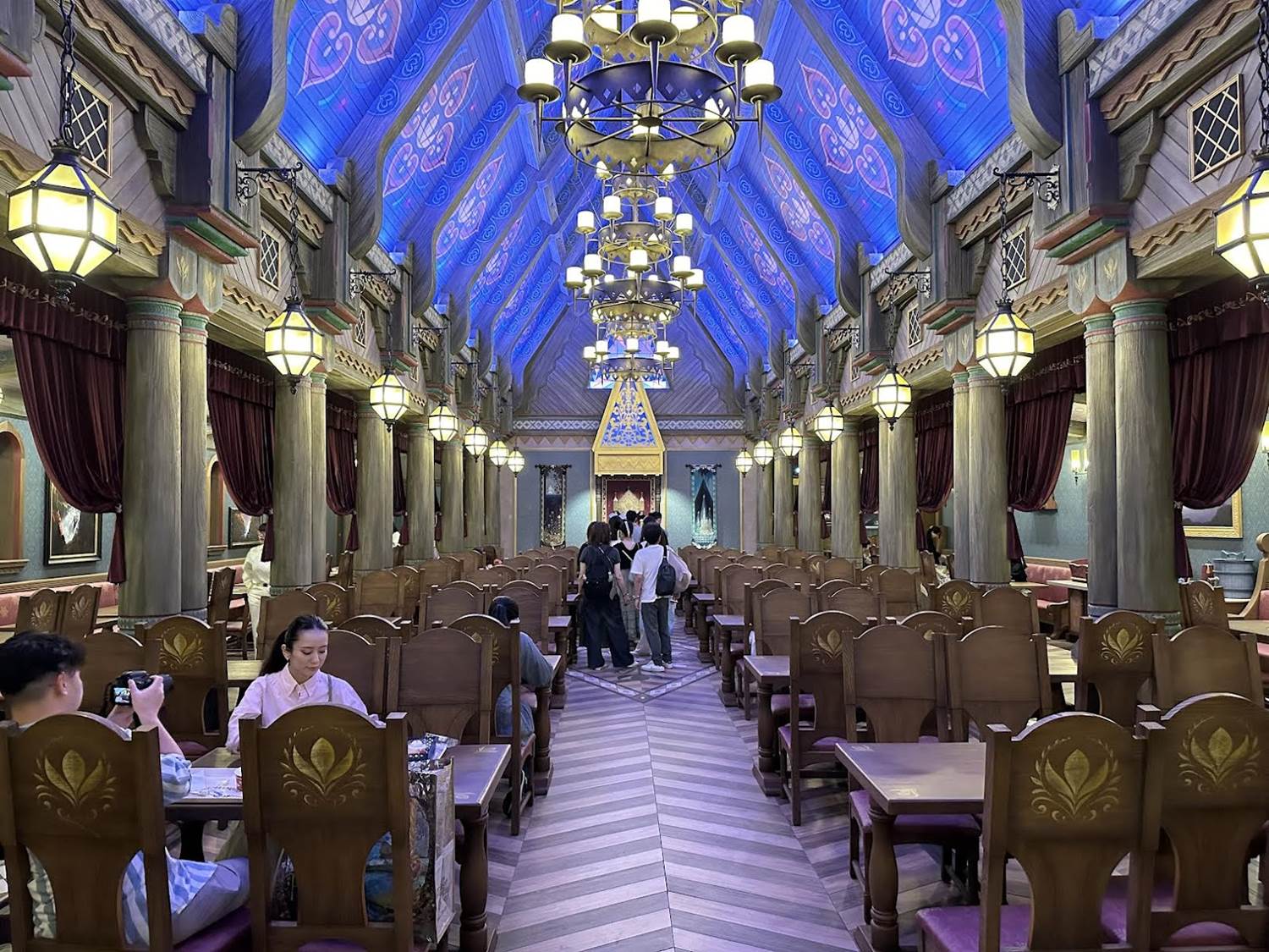 I was also able to checkout the inside of the Royal Banquet of Arendelle restaurant, which contained a large eating area themed to the coronation hall. Fitted with a throne, guests could take pictures as if they were Arendelle royalty. On the right side of Arendelle castle sits Oaken’s OK Foods. The main snack available here is the cardamom and meat bread, which was one of my favorite snacks I had at Tokyo Disney. I highly recommend it if you need a pick-me-up while exploring the new area.