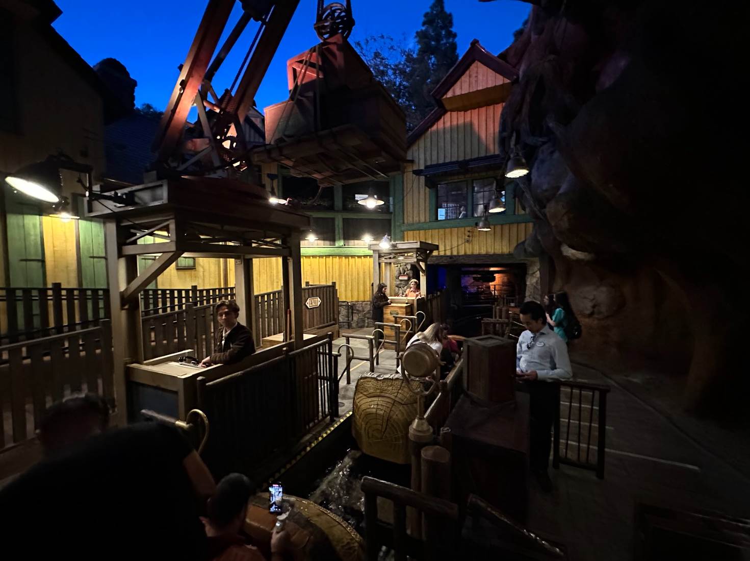 The upper level of the building now features Tiana’s test kitchen, where she makes her incredible recipes. Heading into the salt mine towards the loading platform feels nearly identical to Splash Mountains, but is decorated with new signs and a TV playing a safety video. The loading platform is also similar to the former attraction’s, however, the area received the yellow and green paint scheme and new dispatch panel areas with cranes carrying ingredients. The new queue is definitely an upgrade, kicking off the attraction’s story the moment you step in line. Disneyland definitely took the time to transform the space they had into a new experience.