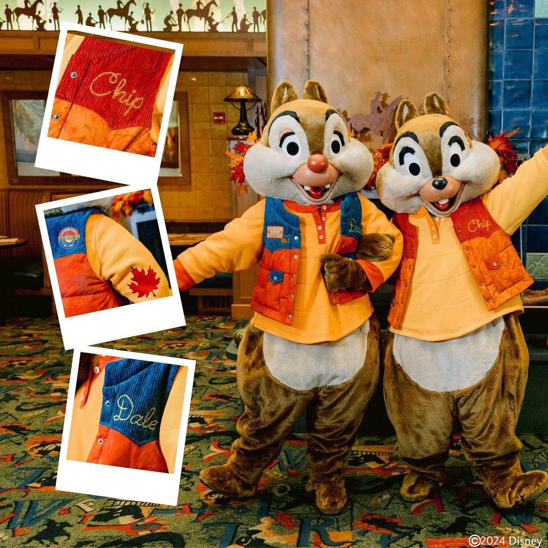 - Chip and Dale sport adorable embroidered jackets complete with some patches and a maple leaf.