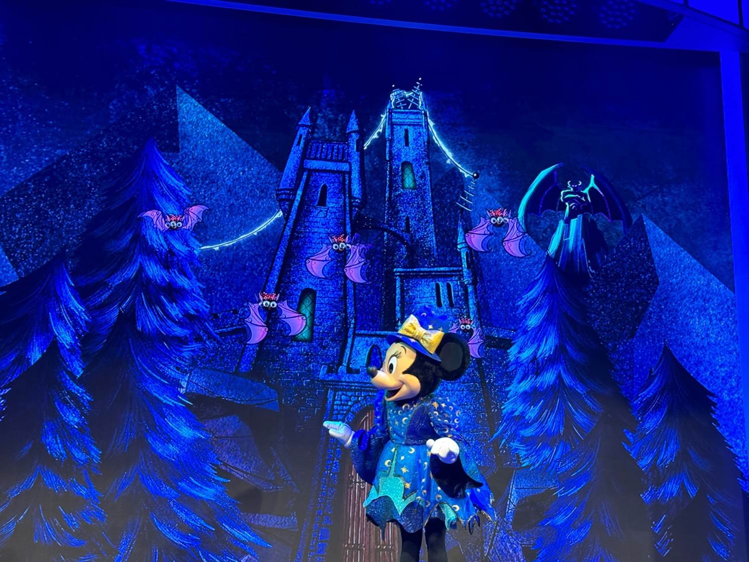 - Mickey, Minnie, Goofy and Donald make appearances dressed in their Halloween finest, complete with some fun Halloween-inspired backdrops.