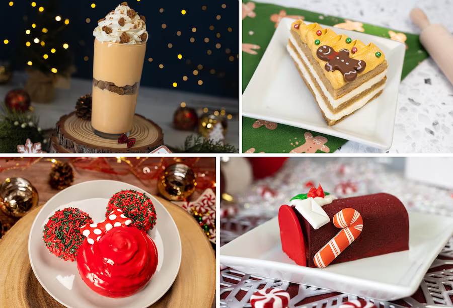 - Minnie-shaped Cinnamon Roll: Cinnamon roll topped with red icing, holiday sprinkles, and a chocolate bow (Available during Mickey’s Very Merry Christmas Party and regular park hours)