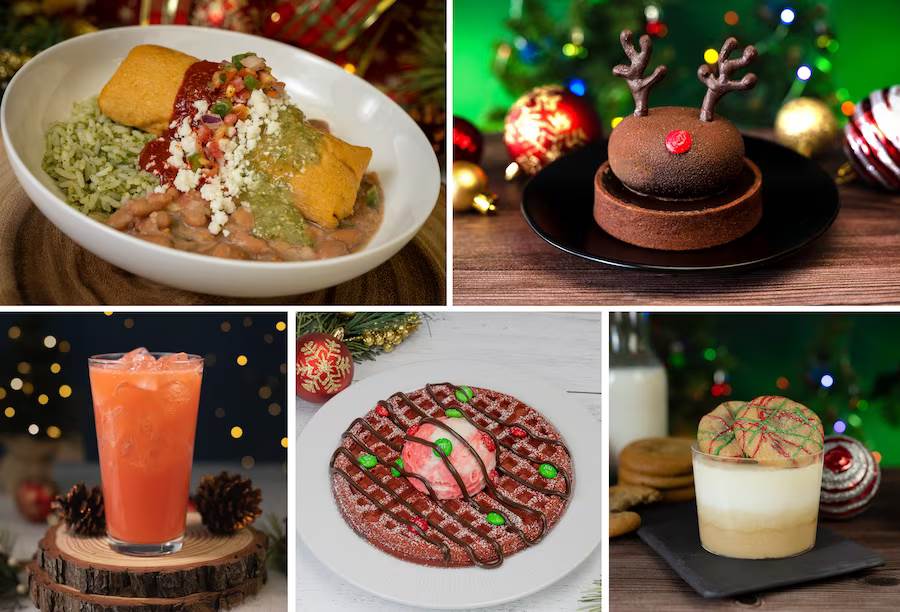 - Chicken Tamale served “Christmas-style" with mild red chile and green chile-pumpkin seed sauces, cilantro rice, pinto beans, and queso fresco (Available during Mickey’s Very Merry Christmas Party only)