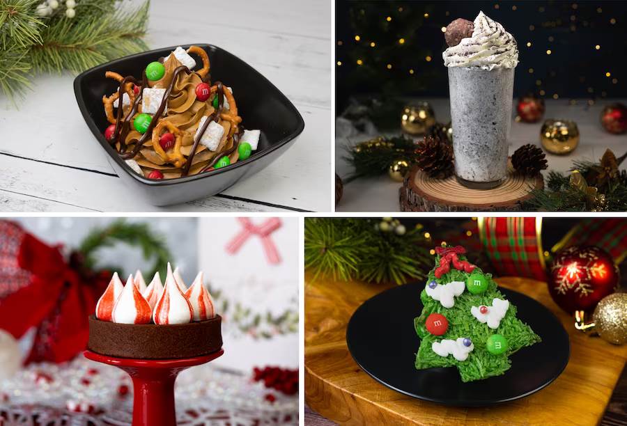 - Reindeer Chow Sundae: Chocolate soft-serve, pretzels, cereal, M&M’S chocolate candies, and hot fudge (New) (Available during Mickey’s Very Merry Christmas Party and regular park hours)