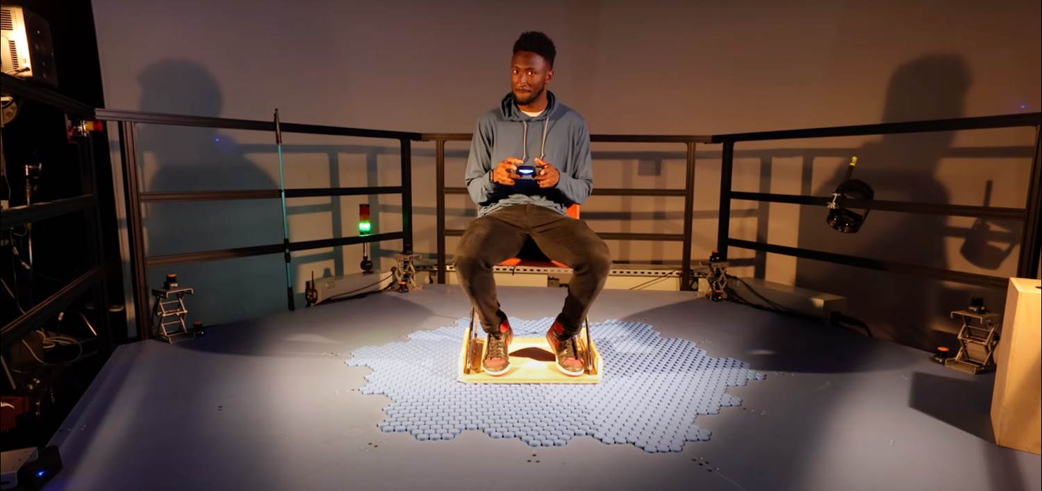 - Next, strapped to a chair, MKBHD showed how he could move around the HoloTile using a controller.