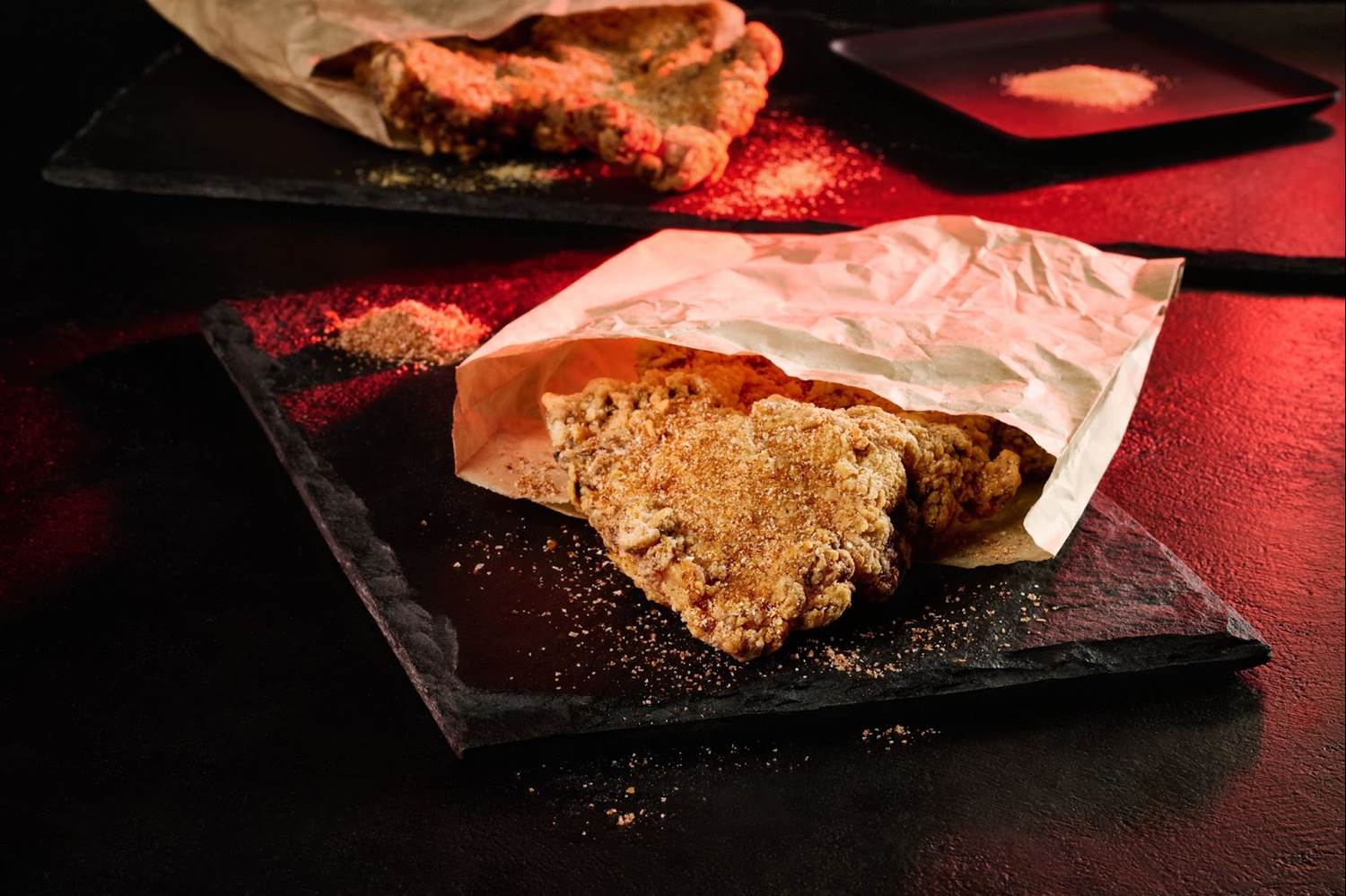 - Taiwanese-style Fried Chicken "Gee Pie": Five-spice marinated chicken with a choice of curry spice or Beijing spice.