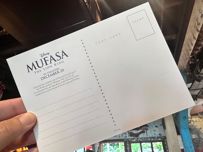 Walt Disney World Annual Passholders can now swing by Disney’s Animal Kingdom to pick up an exclusive postcard celebrating the release of Mufasa: The Lion King.