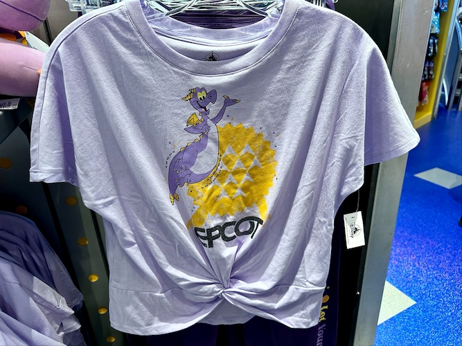 Showcasing both Figment and a golden Spaceship Earth, this EPCOT tee is perfect for Figment fans looking for a more subtle look. While still leaning in the purple family, this pre-tied crop is more periwinkle. You can grab this shirt for $39.99.