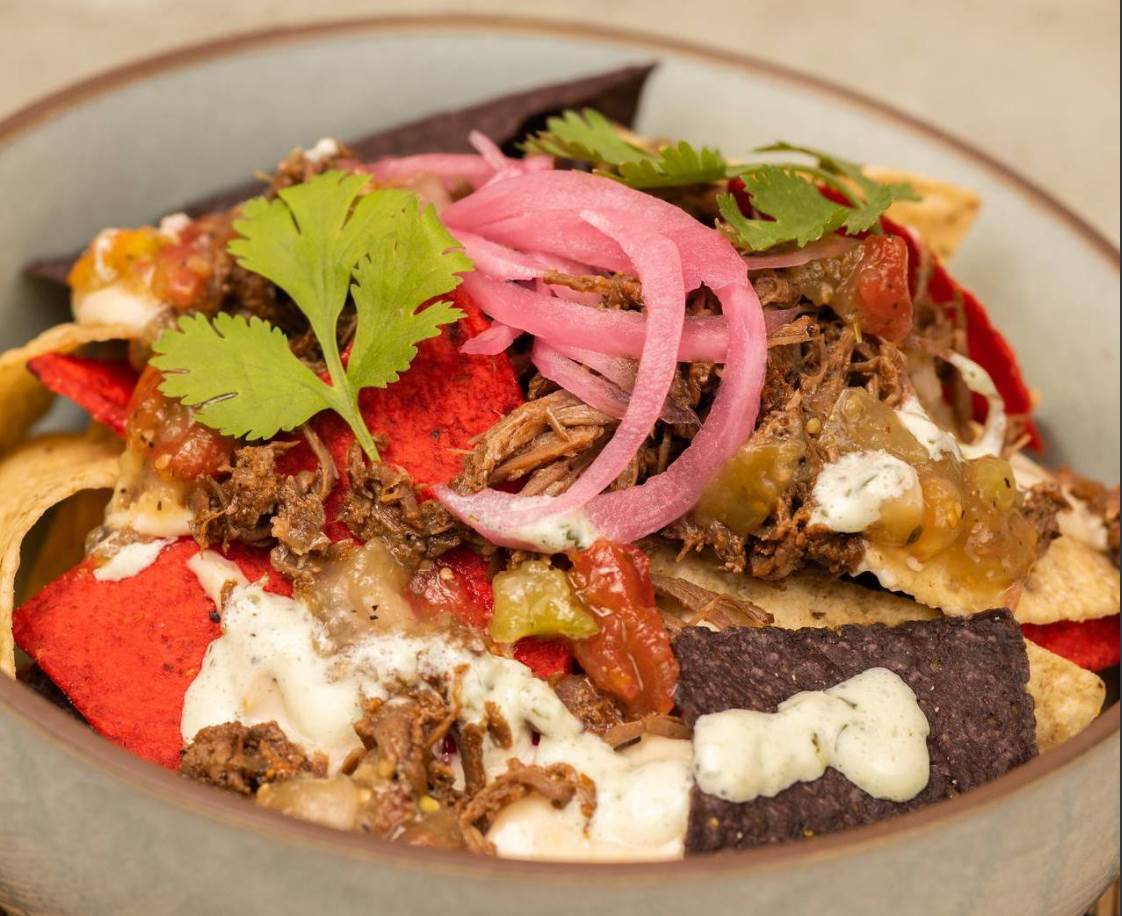 - At the Smiling Crocodile, Barbacoa Beef Nachos are now available to order. Barbacoa beef sits atop tri-colored nachos and topped with queso, lime crema, and pico.